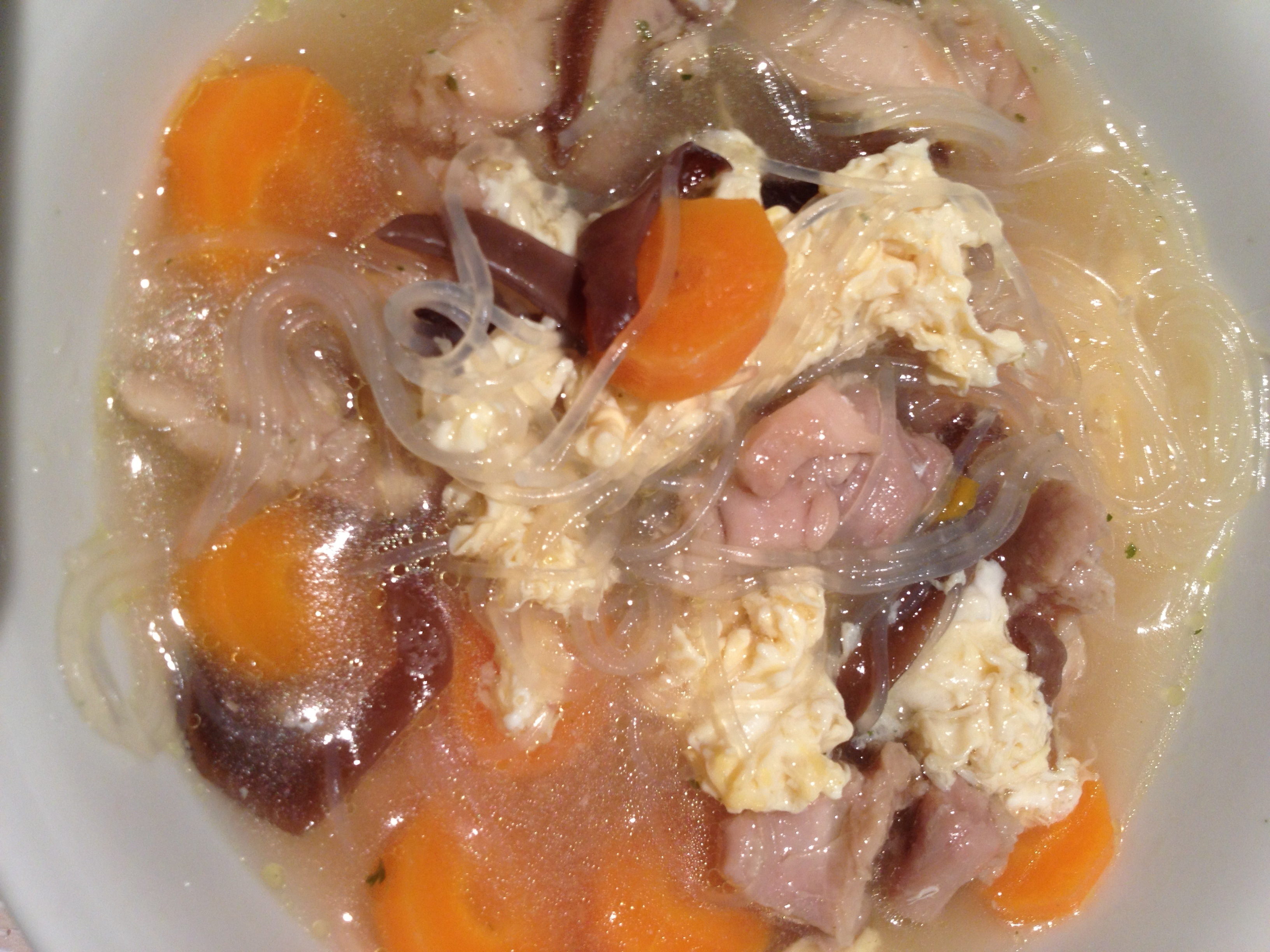 Chicken egg drop soup (with green bean noodles)