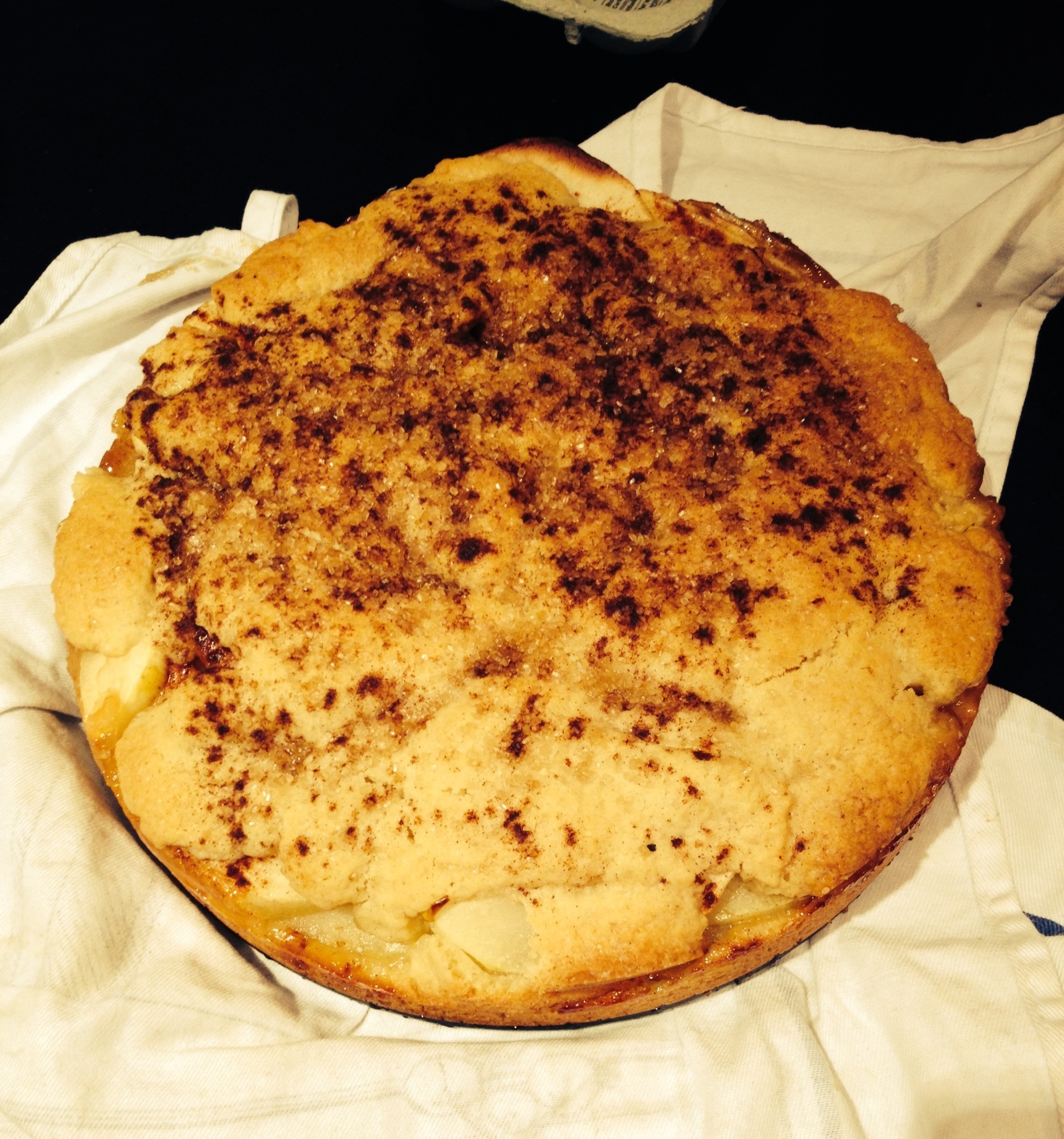 This Scottish friend of mine likes apples. A lot. He’s the one who introduced me to the sweet apple side that goes so well with pancakes, and when I visited his house a few weeks ago, he made me a cake that was – surprise! – filled with apples. This recipe has been handed down from his mother, hence its name, and it is very simple to make. The only thing that takes time is peeling and slicing the apples, but with a good Swiss knife, even that can be fun! It’s best eaten warm with a drizzle of cream (or maple syrup if you have a very sweet tooth!).