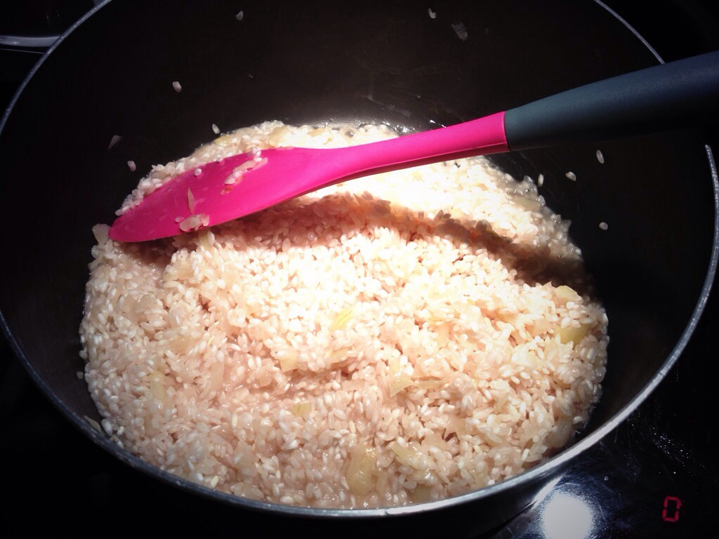 The title speaks for itself. It is glorious. I had a pre-birthday party last weekend and there were quite a few bottles of bubbly involved, one of which was left half full in the fridge. Being a resourceful person, I couldn’t resist trying out my sister’s suggestion of using it for risotto (apparently she had it at an Italian wedding!). My friend (of apple cake fame) was also coming over for dinner, which was the perfect occasion. Although he mainly came to eat the destiny brownies that were served up for dessert, I think he enjoyed the risotto too…