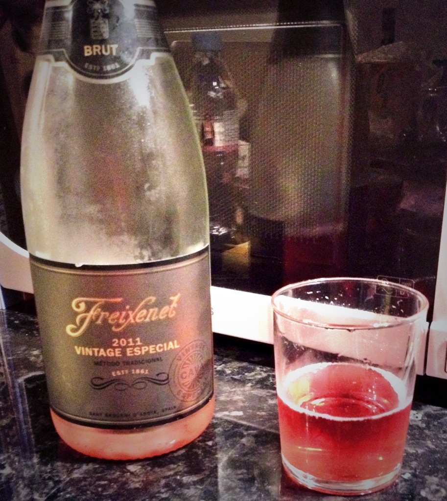 Boil up the chicken stock in a separate saucepan and leave to simmer quietly on the stove. Add the saffron threads. (I don’t normally do this, but I felt since I was using cava and saffron in a recipe, I should do it all properly!)