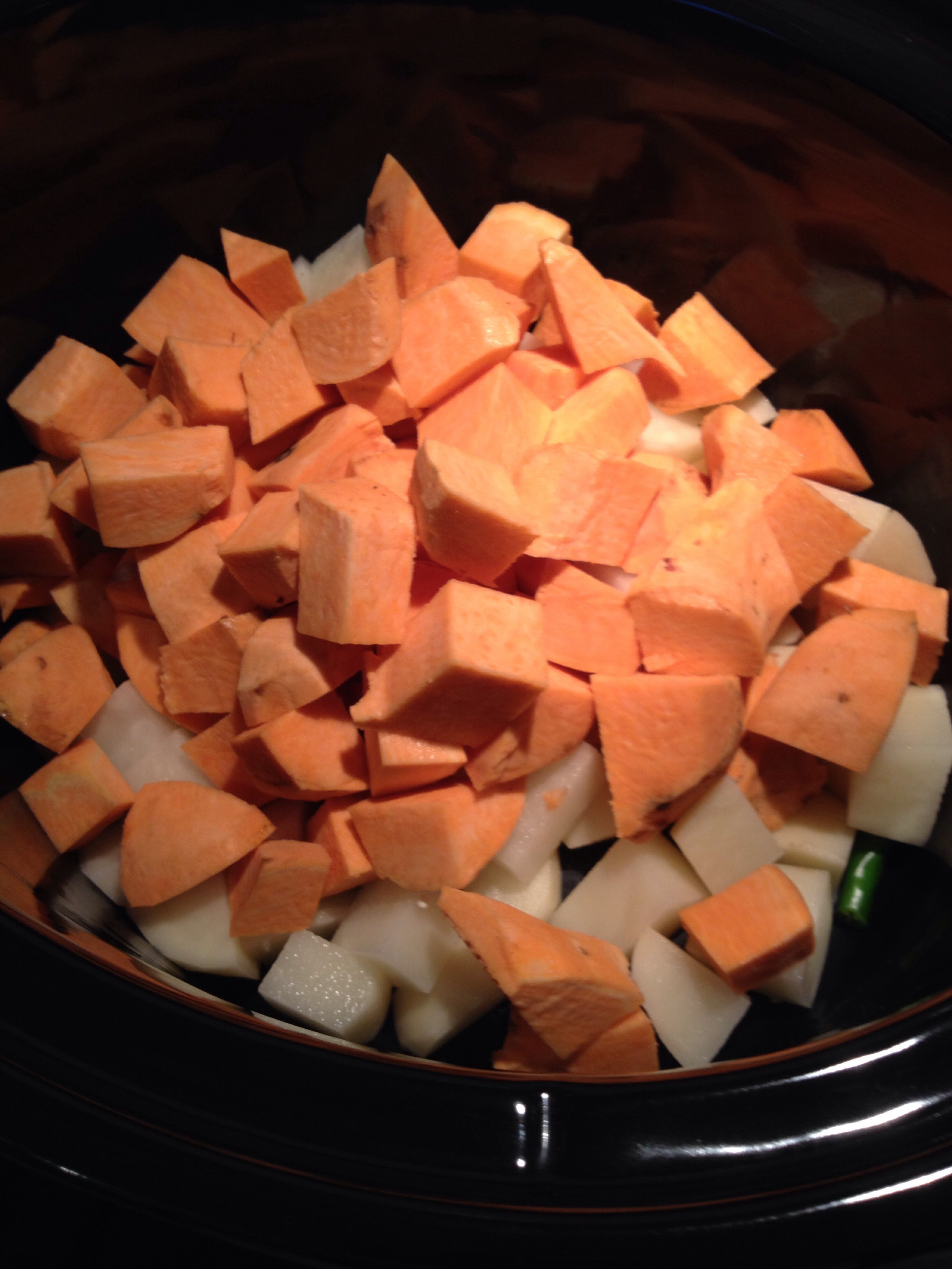 - 3 sweet potatoes, peeled and chopped into large cubes