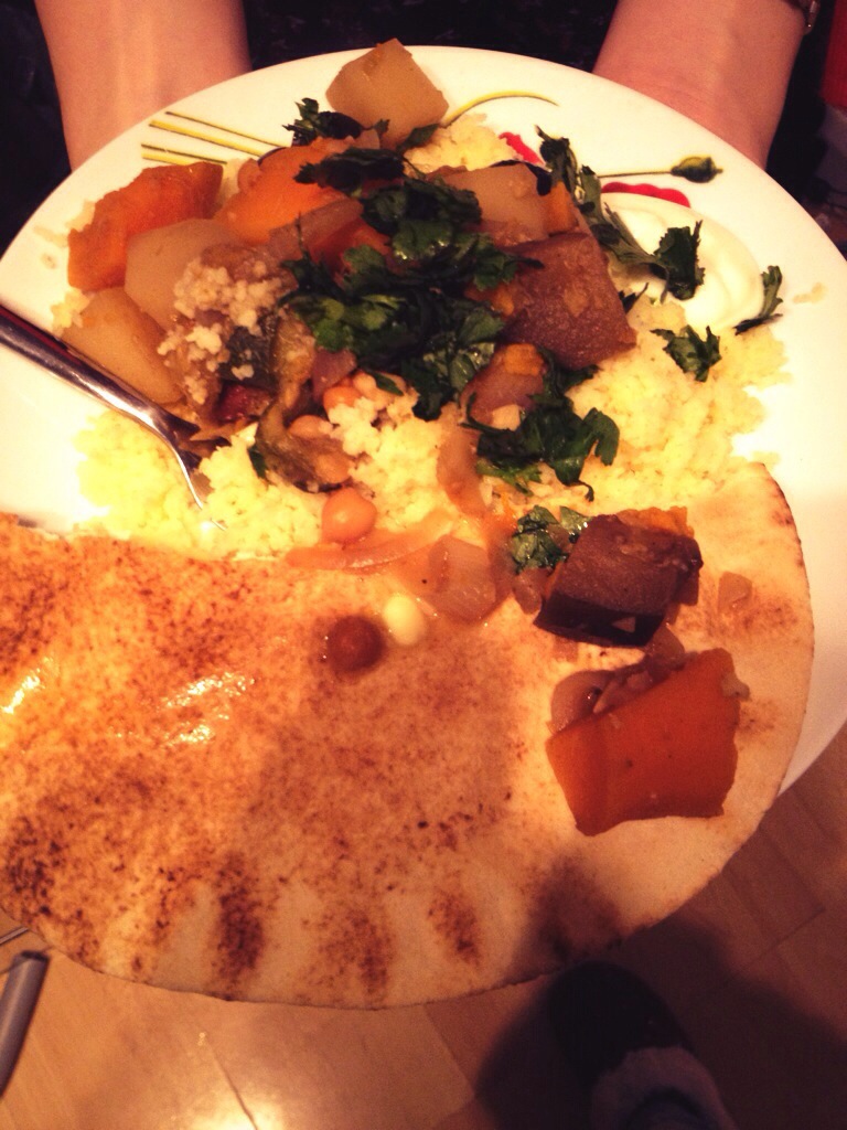 Since 3 of my friends are vegetarian, I went down to the local vegetable shops and purchased a lot of vegetables. I then sent them all away to a museum (the flat was just getting too crowded!), put on some relaxing music and peeled, chopped and mixed everything together. The result was mouthwatering! A special thank you to Spice Kitchen UK for the Ras El Hanout, without which this dish would not have been possible. Look out for its availability soon!