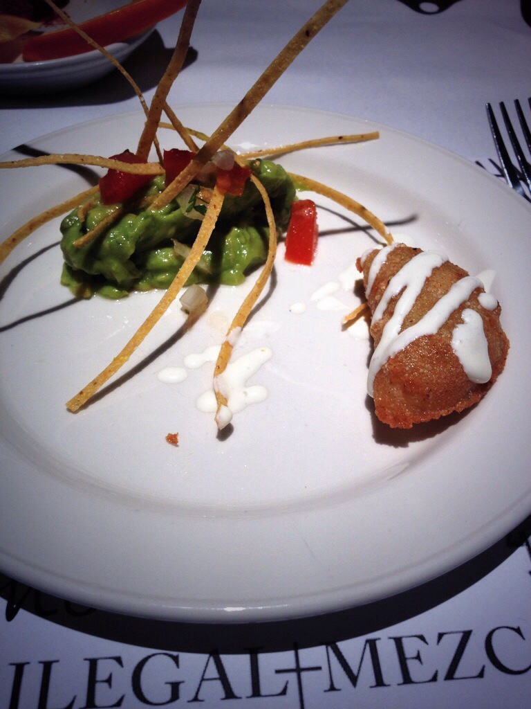 Our final drink of the night was another Ilegal Mezcal, but this one was aged for 18 months and thus named Añejo. It had hints of vanilla and caramel but nonetheless was very strong! With it we received our final small plate – a small quesadilla with fresh guacamole, which was the perfect combination. Sadly, we’d finished all the tortilla chips so I couldn’t mop up the rest of the guacamole!
