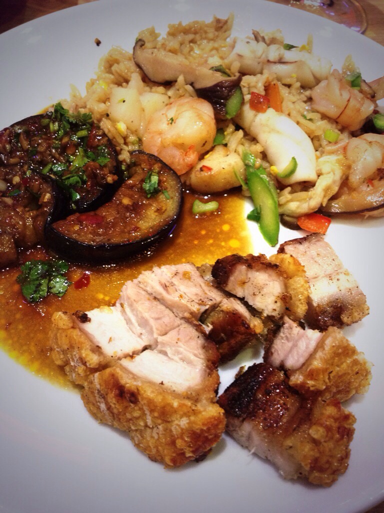 This, Jeremy told us, is the key to real Chinese cooking. This meal exemplified it perfectly – we had a brothy Fujian fried rice with shades of green, red and orange, a gloriously crispy serving of pork belly and a melt-in-the-mouth spicy Sichuan style aubergine.