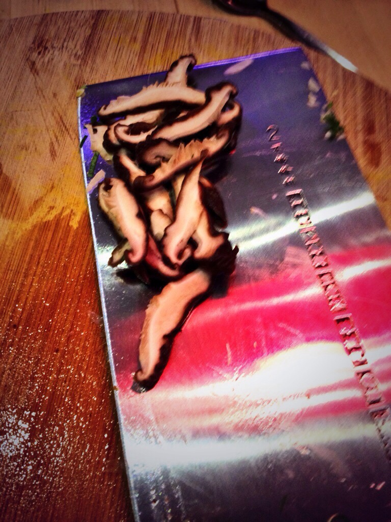 It is the only utensil we used to make the entire dinner. It is capable of chopping everything under the sun and it is also really fun to use. And once you get over how incredibly large it is, you get into a rhythm and feel oddly calm whilst wielding a knife that could chop anything from a clove of garlic to a small animal!