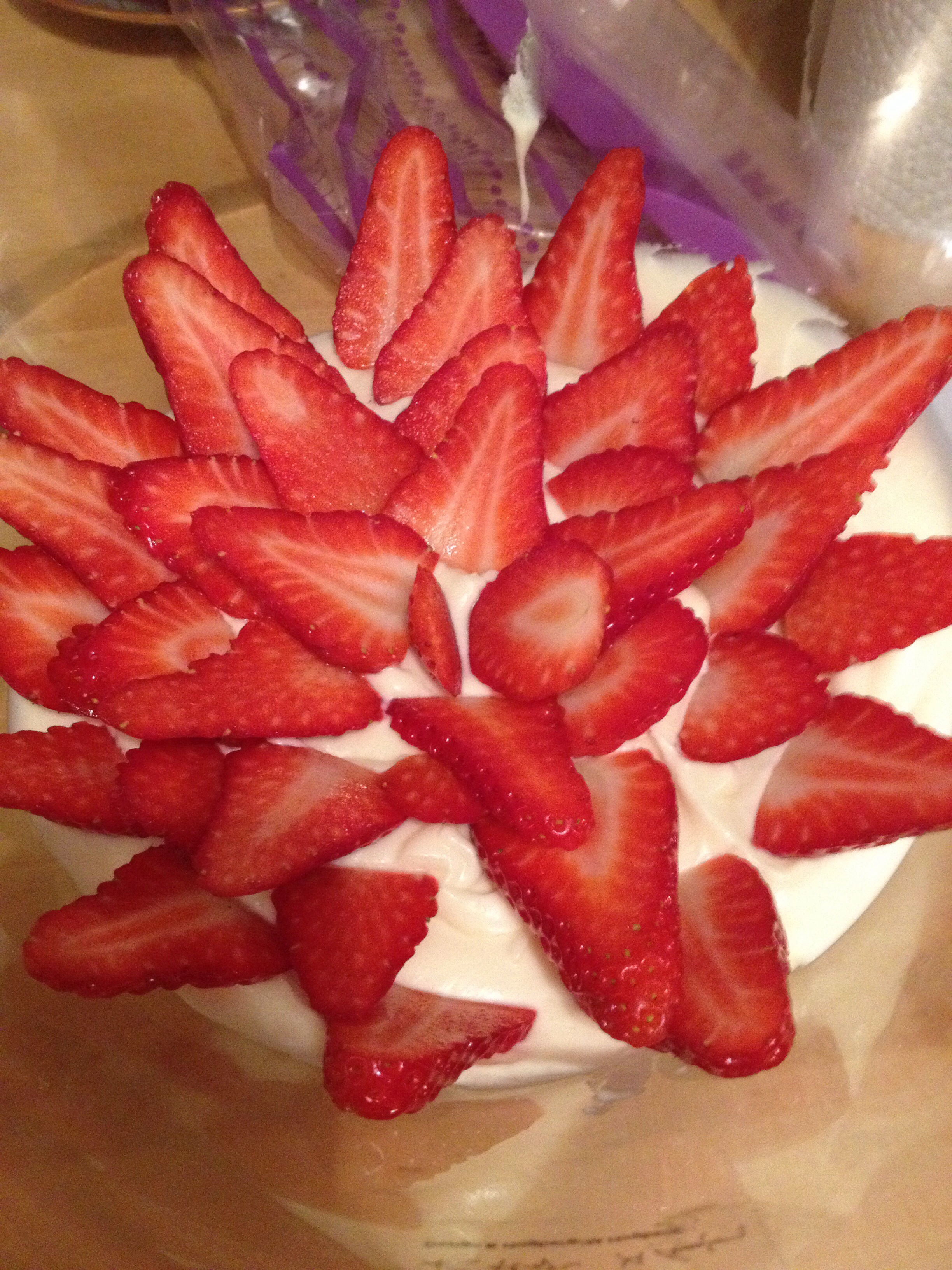 3rd course: White chocolate mousse with fresh strawberries (chilled overnight, recipe courtesy of The Baking Medic)