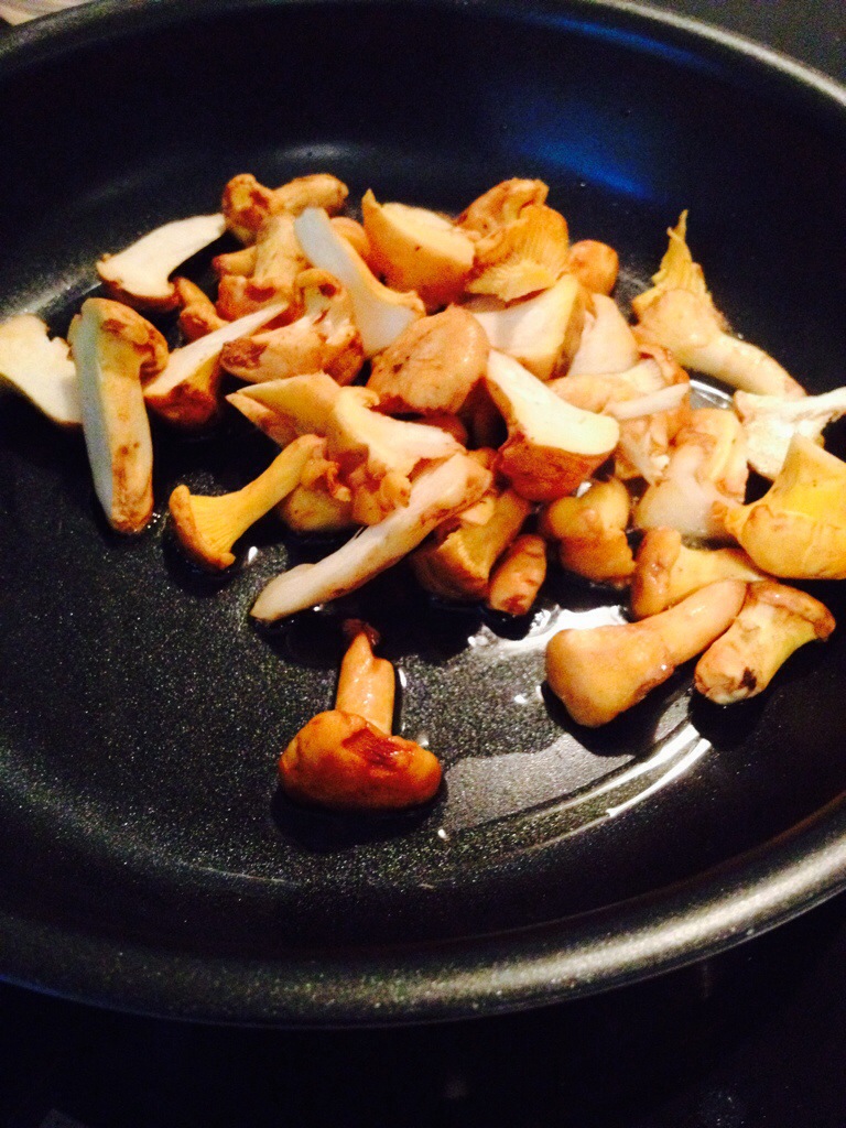 • 75g chanterelles/Pfifferlinge/Eierschwämmli, sliced into small pieces (keep the stalks)