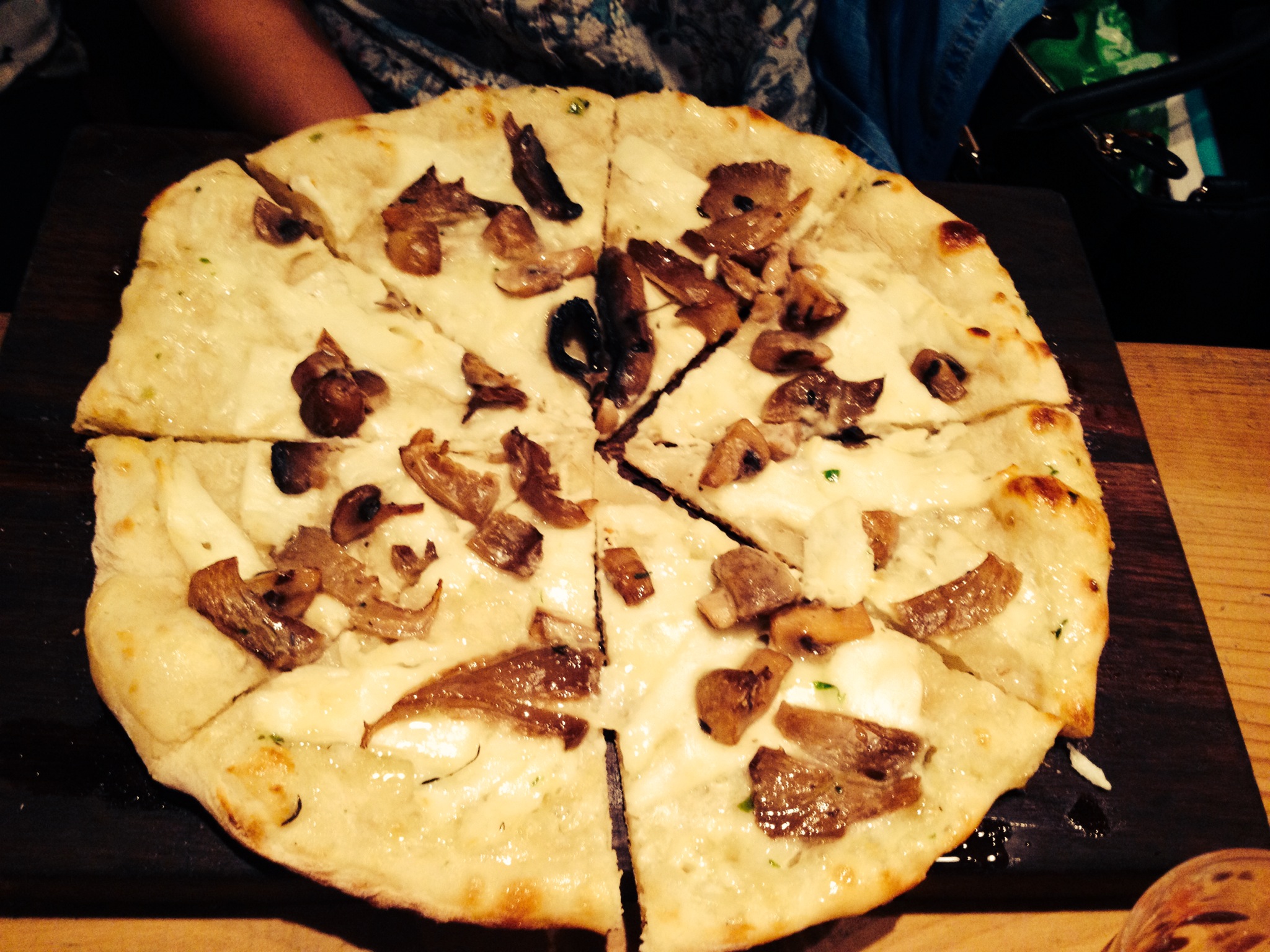 When I walked in, it was even smaller than I expected, but it felt cosy and we took a table downstairs. Due to the nature of the evening, we spent the first half hour chattering excitedly and catching up on news before realising we hadn’t been asked to order anything. We then managed to grab a waitress, who told us there was no table service downstairs so we’d have to order upstairs, and that they were only serving pizzas.