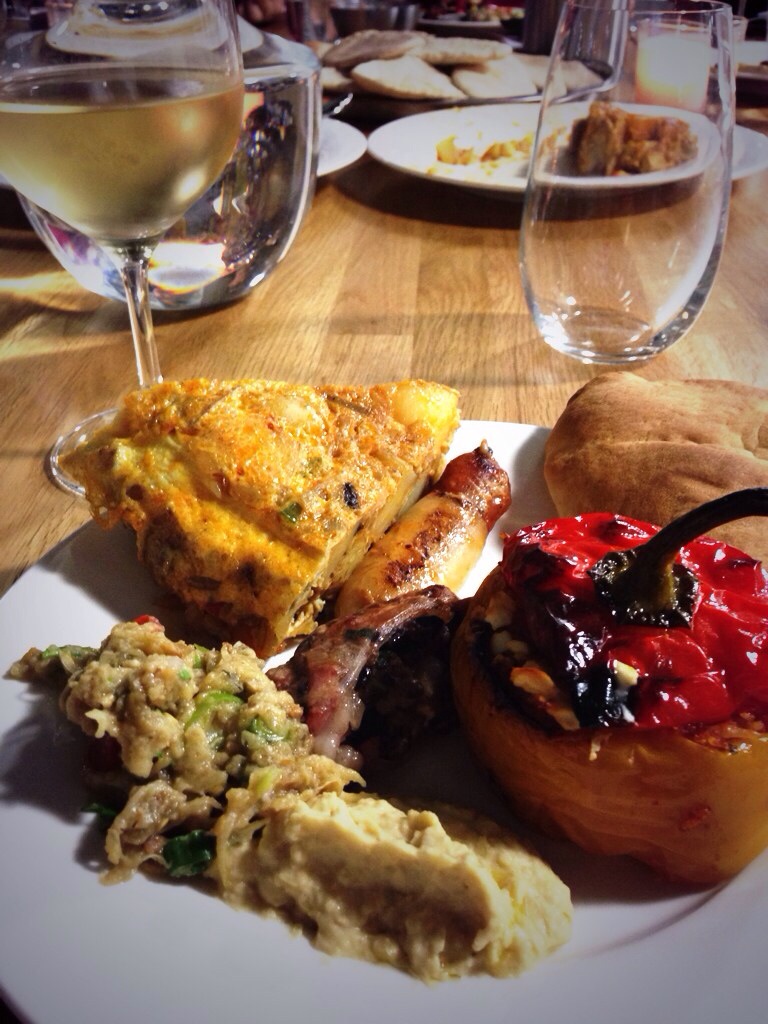 Of course, how could I forget the food? As it was street food, we made a huge variety of dishes, but my favourite was the aforementioned lamb sausages, followed closely by the squid stuffed with chorizo (two of my favourite things – why had I never combined them before?) and the unbelievably simple hummus. Other dishes included roasted stuffed peppers and tortilla de patata, all of which were absolutely scrumptious. The cuisine was Mediterranean, and the dishes were a mix of Greek, Portuguese and Spanish specialties. I was able to take home some leftovers and ate them for lunch the next day – it’s safe to say everyone at work was jealous…
