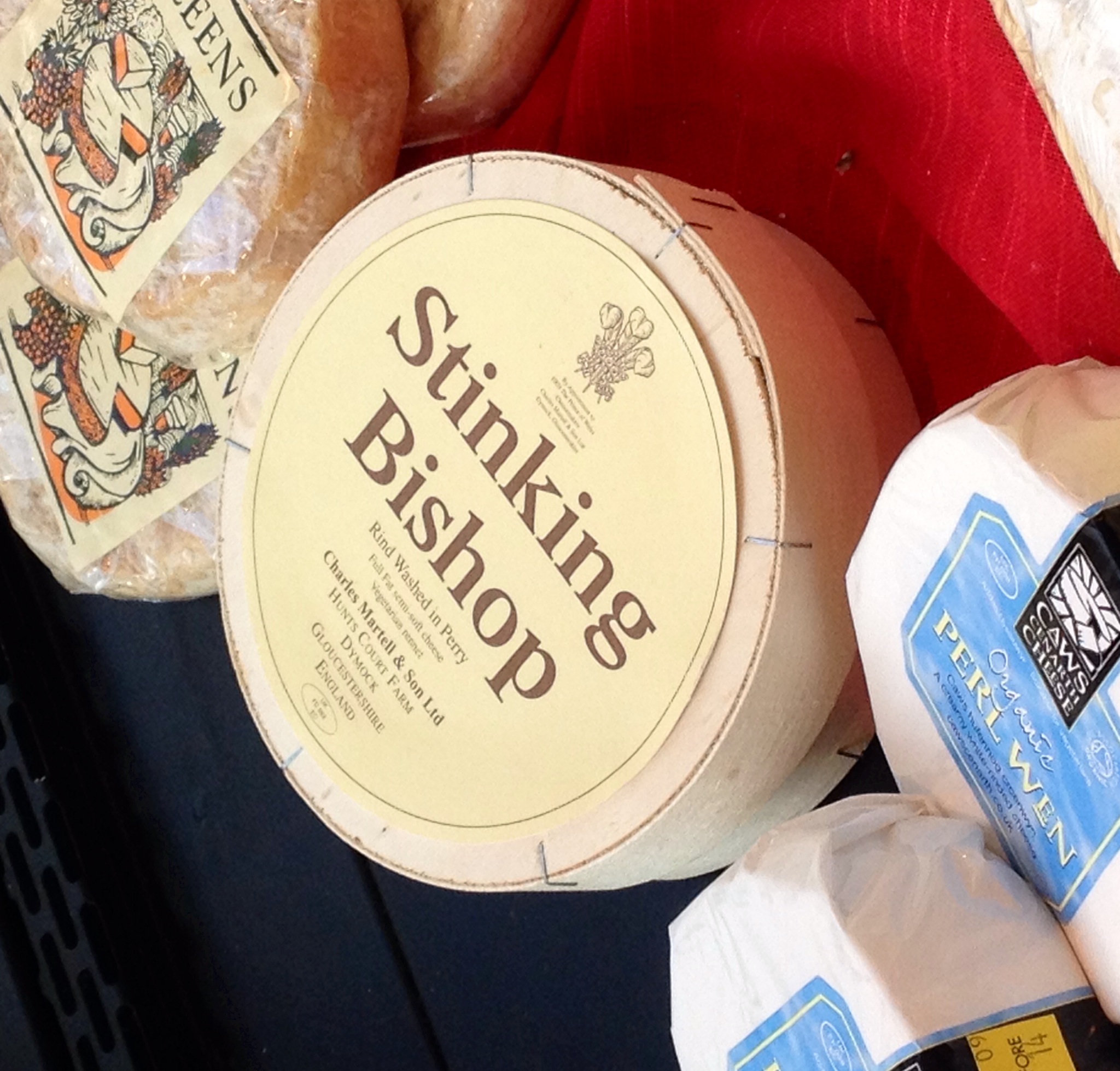 La Cave à Fromage, with its black and yellow signage, is in elegant contrast to the bustling Portobello Market stalls that crowd around it. Peering through the glass, we see a broad array of products to enlighten any whose memory of high school French has failed them: cheeses, British and European (principally French), ranging from tiny balls of goat cheese decorated with herbs to the larger wheels of cheese that adorn many a cheesemonger.
