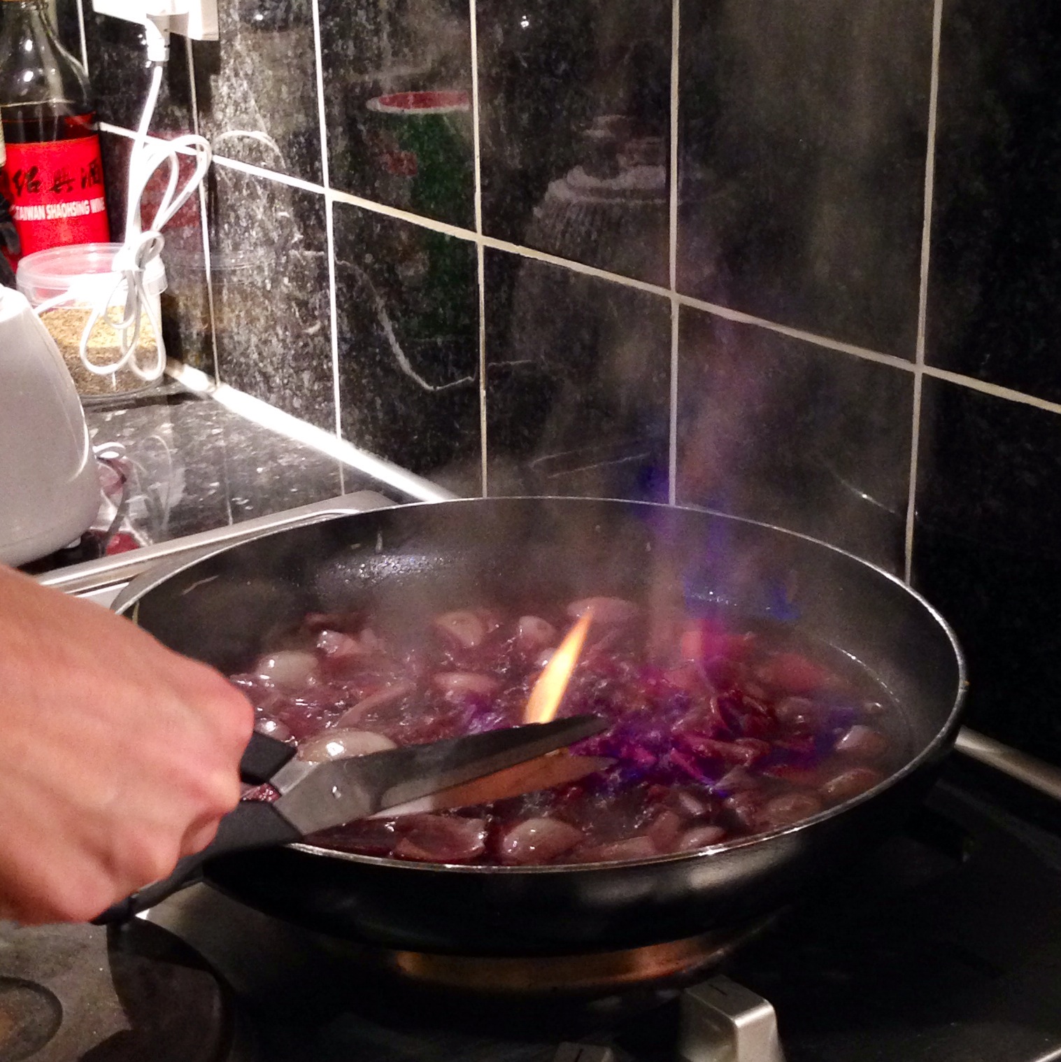 Make the sauce: Melt some duck fat or butter in a large frying pan and add the carrots, onion, shallots and garlic. Fry over medium heat for 15-20 minutes, until they are soft and golden brown. Add the wine, bring to a rapid boil, and then (this is the fun, yet slightly dangerous part) light with a match to burn off the alcohol. Then lower the heat, add the cloves, thyme and bay leaves, and leave the sauce to simmer for 20-30 minutes. Then, let it cool down, pour into a Tupperware and keep in the fridge overnight so it can get all yummy.