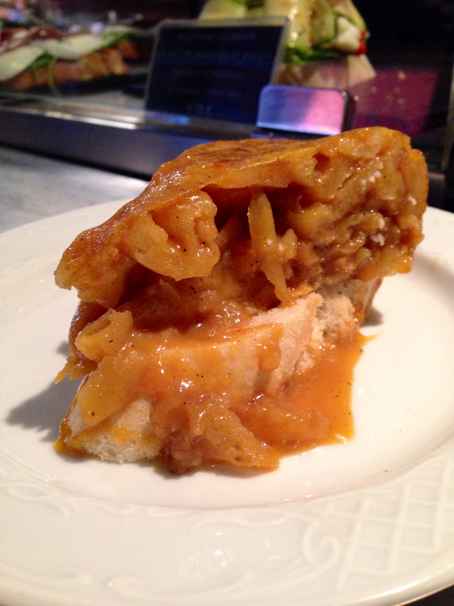 As these were pintxos, they were all served atop a crusty slice of bread. The egg was truly incredible, as it was poached (my favourite type of egg) and the truffle taste infused my taste buds. The baby eels were delightfully garlicky and thus a big hit with both of us.
