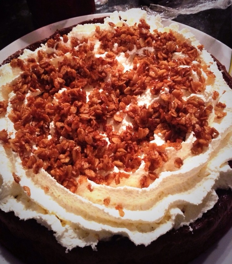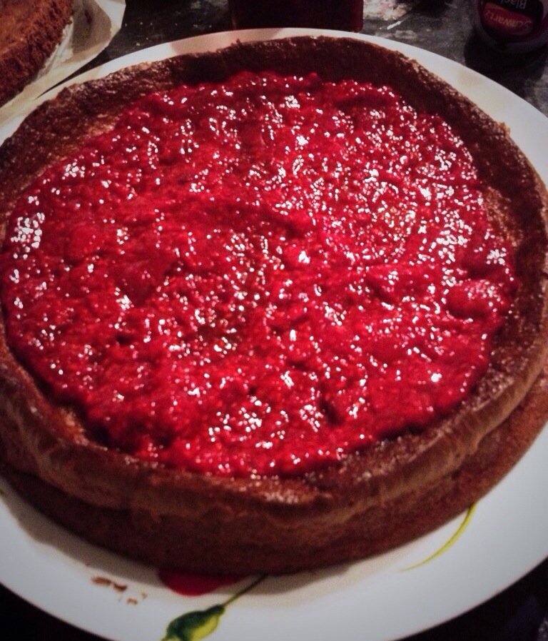 It’s a little complicated. It’s a little tedious. We had a cream whipper, which made things a lot easier. But it is worth every second of preparation! We made the cake batter, raspberry sauce, granola and whipped cream separately, and then assembled everything at the end.