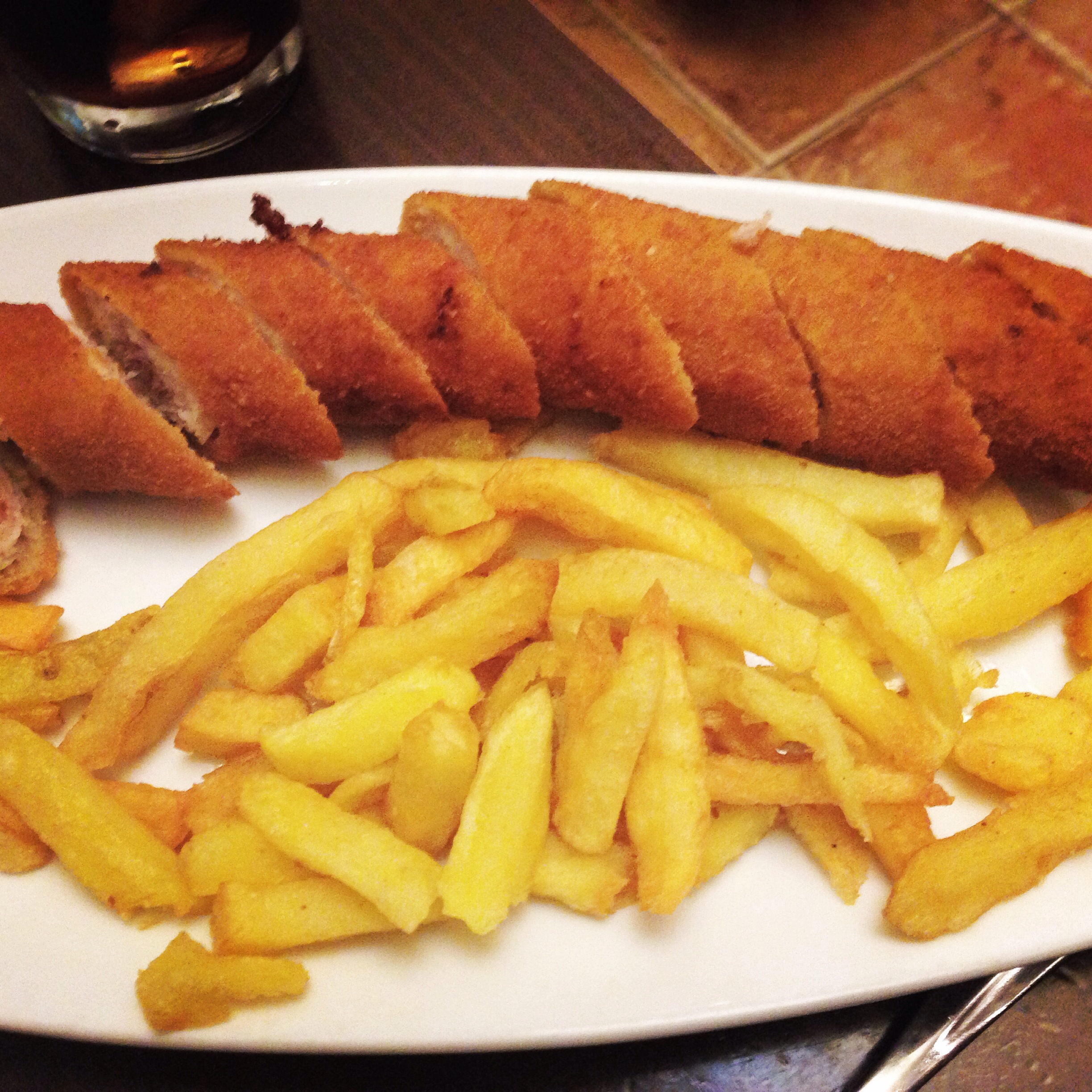 The other dishes were also typical of the region: cochifrito (the most deep-fried and delicious pig ever) and flamenquin, another deep fried pork dish, where pork was wrapped in more pork and deep-fried. Felix topped it all off with a free chupito (shot), which was very good of him, even if it did taste a bit like cough medicine…