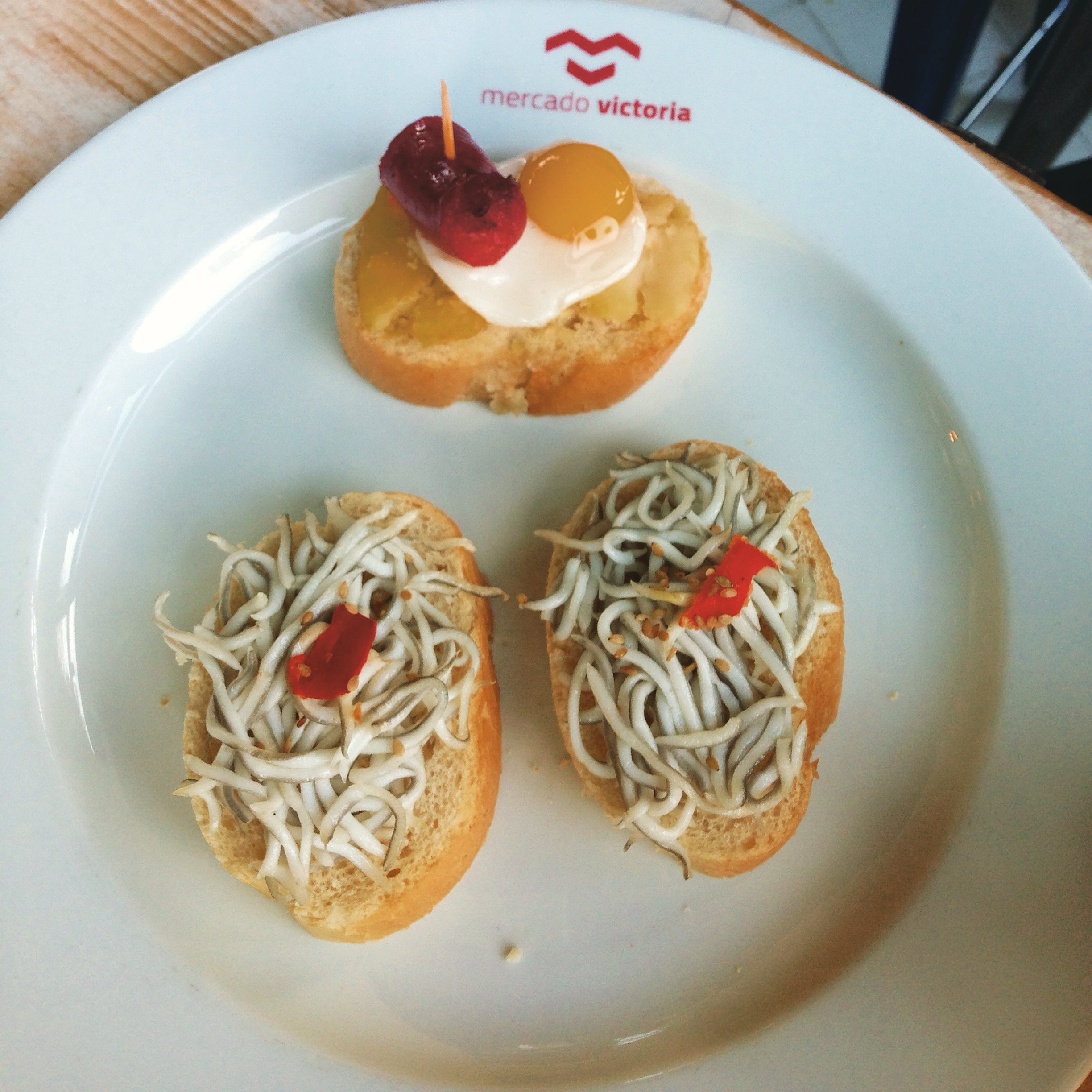 Later that day, we wandered down to the river and then all the way to the Mercado Victoria, which is a closed-space gourmet market. It had everything from frozen yogurt to Wagyu beef, fresh seafood, gourmet tapas, pintxos AND… a salmorejo bar. You can imagine where I steered to first! There were many different flavours available, including a black one made of squid ink, and we tried quite a few before choosing a mushroom version with truffle oil, topped with the usual egg and jamon. We also got some croquetas from another stall which ended up being the best ones of our trip, filled with spinach and rabo de toro (oxtail – another specialty of the region). The croquetas were creamy on the inside but crispy on the outside – a perfect combination.