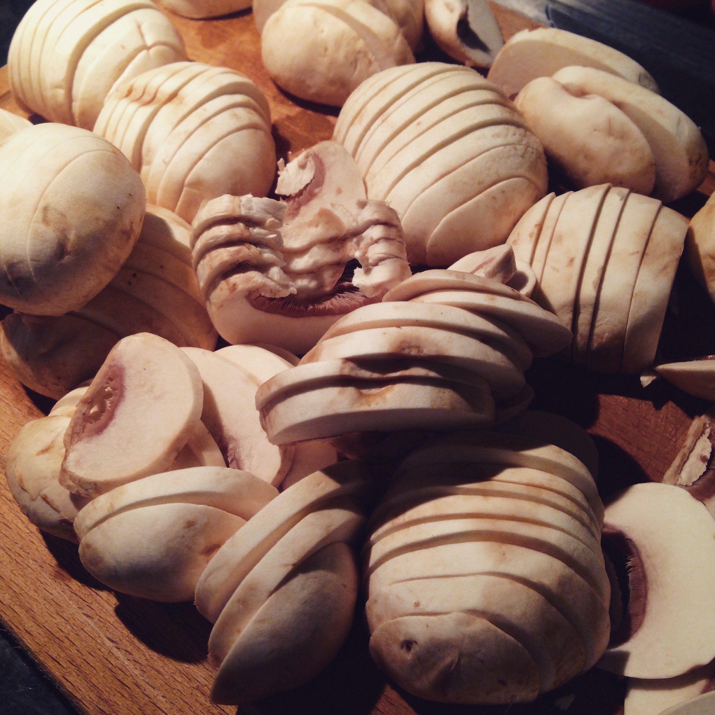 - 14-16 white or chestnut mushrooms, de-stemmed and thinly sliced