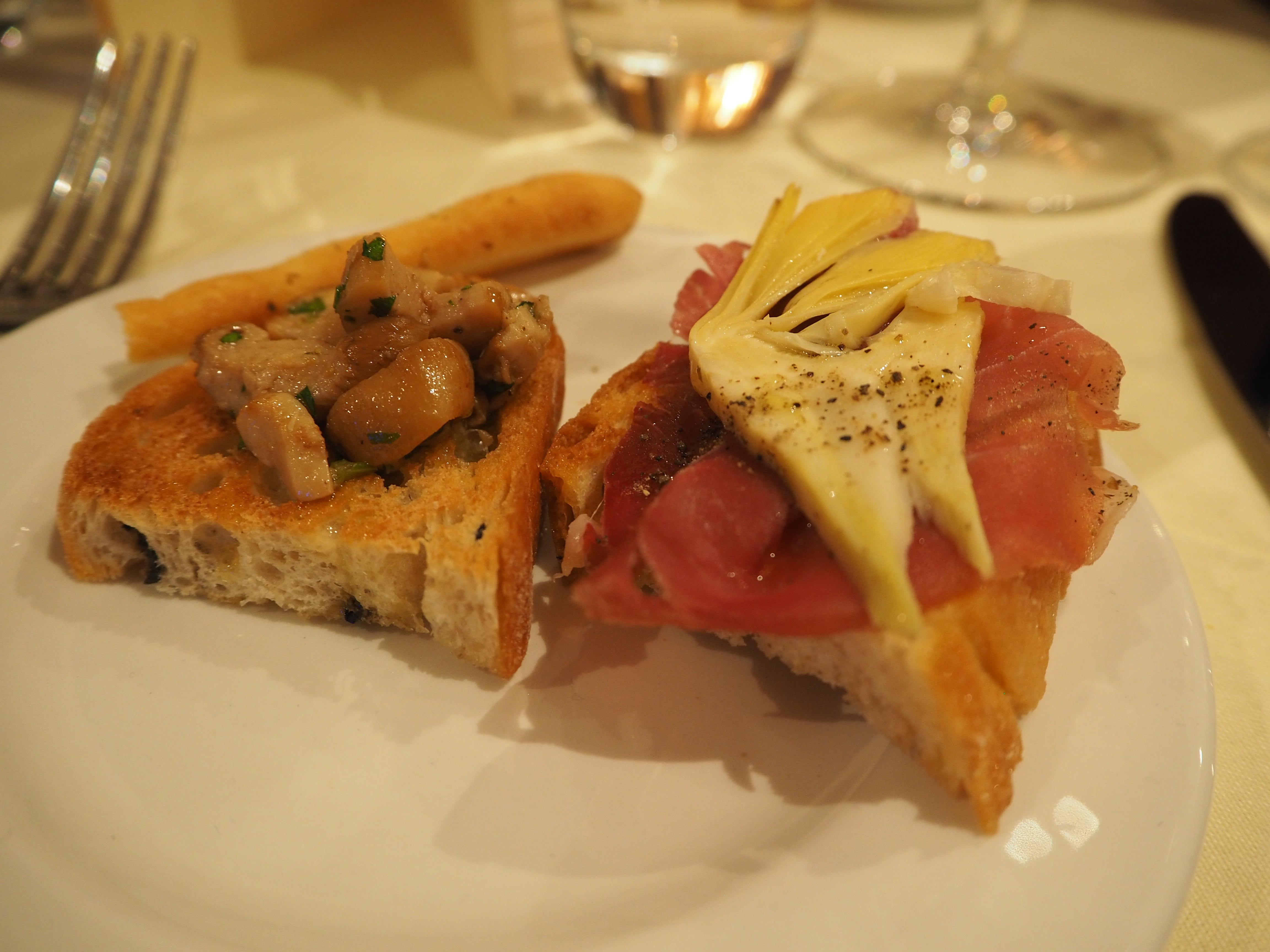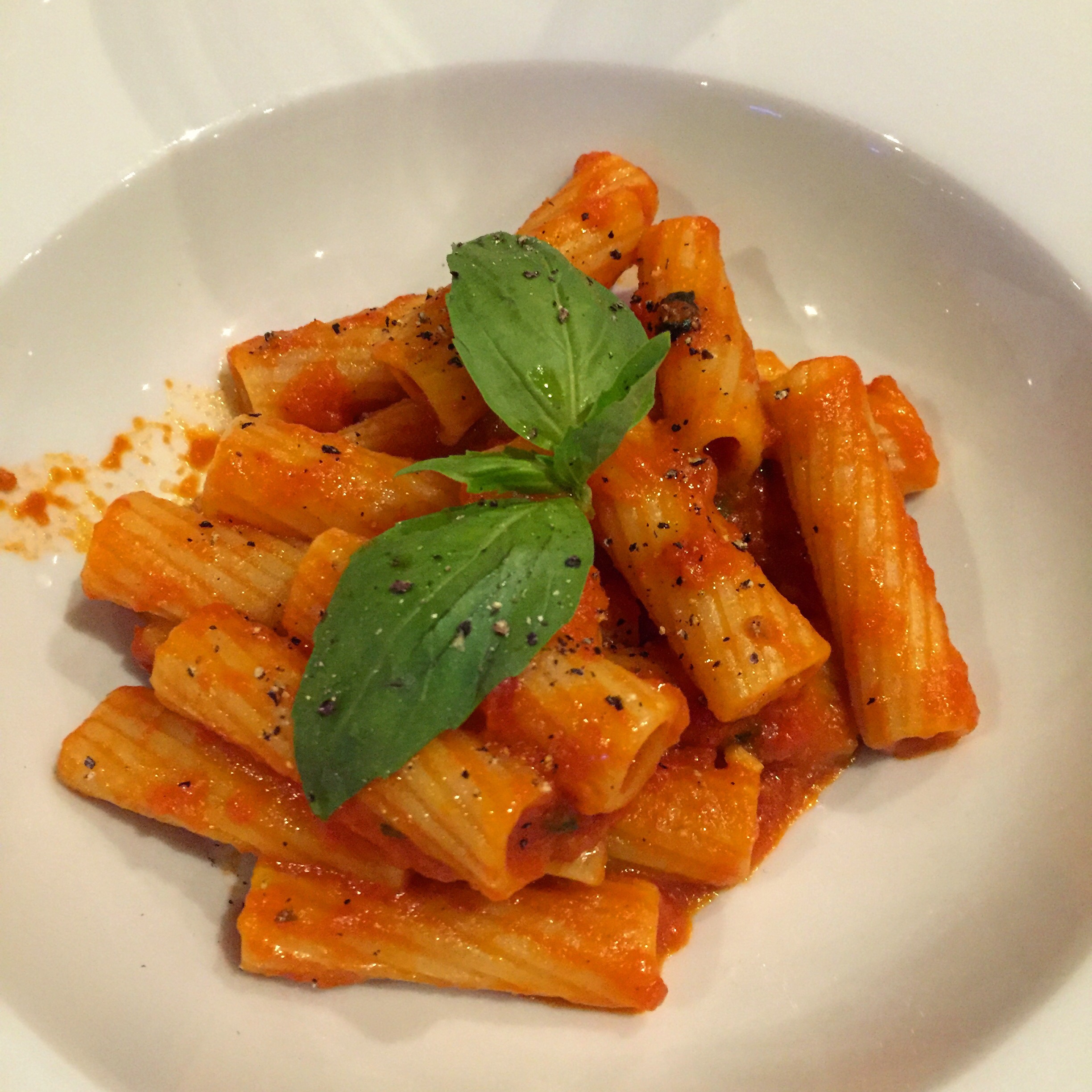 The first course of many was a very simple rigatoni with fresh tomatoes and basil. I don’t like tomato, but I think this habit of mine may be changing, as I ate it all! The past was perfectly al dente and although my tastebuds protested slightly at the tomato-y taste, the experience was mostly positive. Times are a-changing…