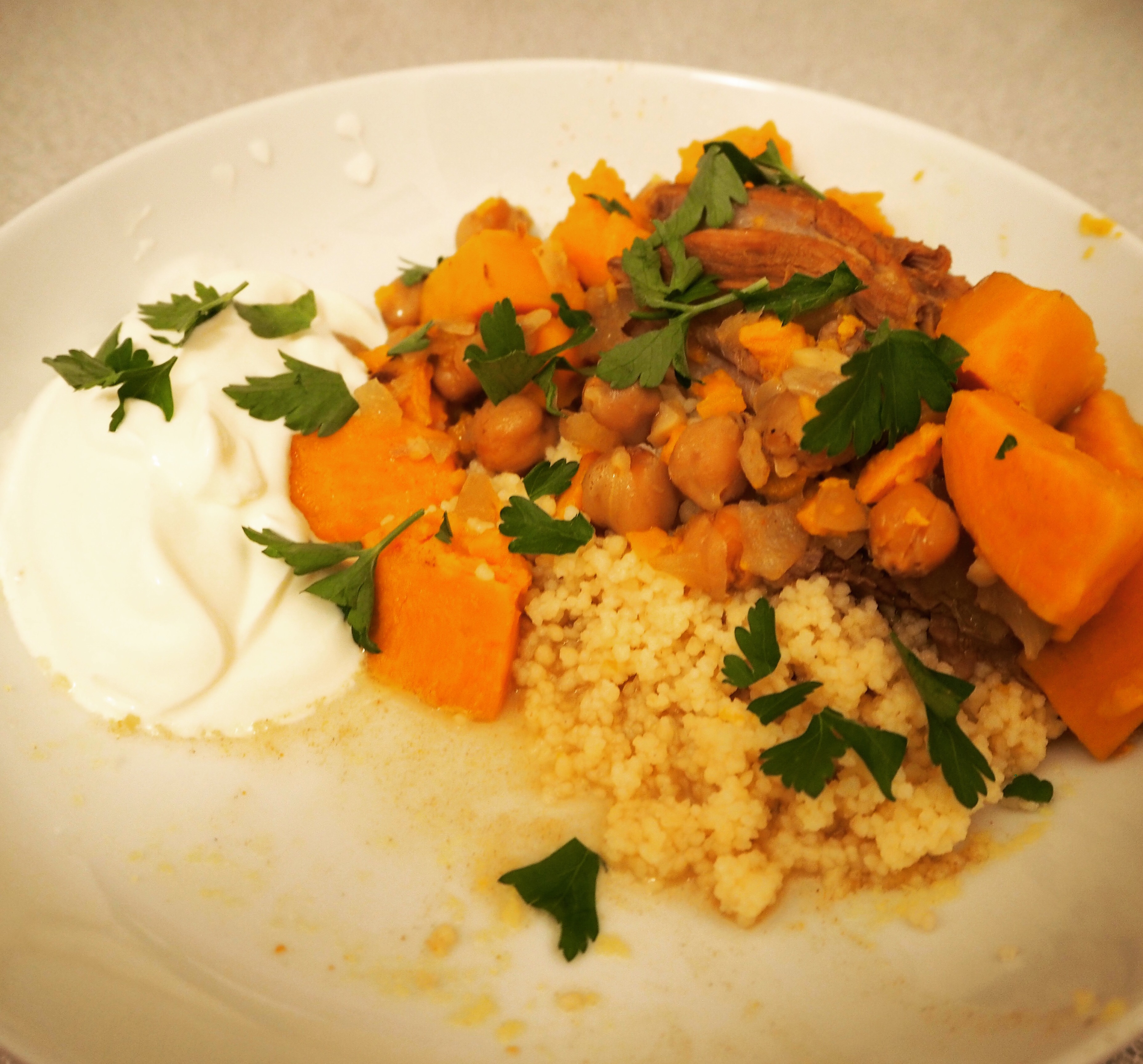 This recipe is essentially a variation on my previous lamb tagine – I didn’t feel like the sweet and savoury mix this time, so it’s just full of warming spices. And whilst I expected the lamb to become tender, I couldn’t believe what happened after 8 hours… It. Fell. Right. Off. The. Bone. Literally. It was an amazing feeling, and I would cook this dish again just to experience that!