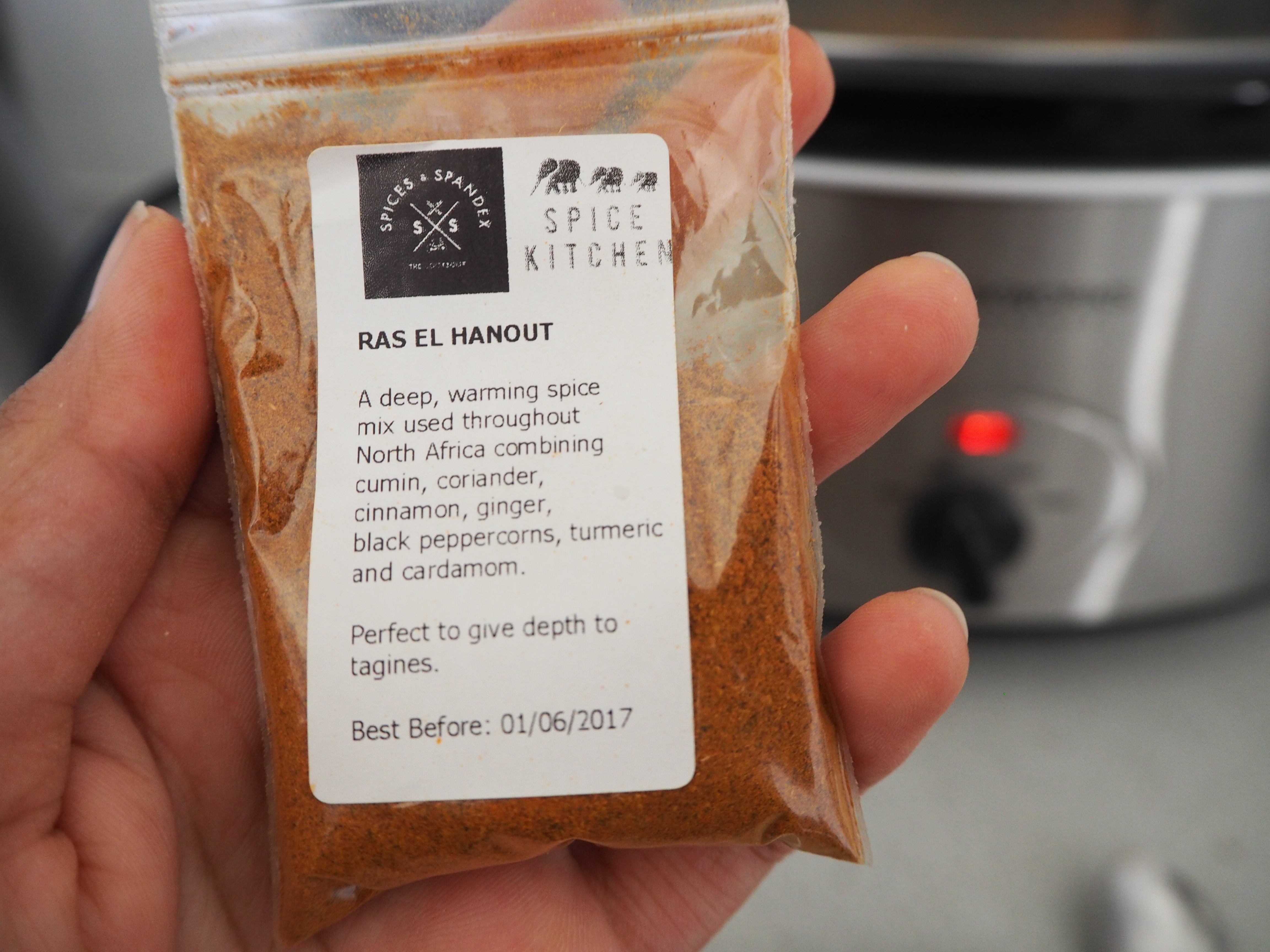 ‘This won’t do!’ I thought, as I put my mind to work. I ran through tens of potential recipes, involving chicken, coconut milk, Oriental flavours, beef mince, and more. And then I remembered the nifty box of spices I received a while back from Spice Kitchen UK, and wondered if I could put it to use. Lo and behold, it included some Ras El Hanout, and so my decision was made. Luckily, the grocery shop is right across the road, so the energy expended to buy a couple more ingredients was minimal (though I did have to lie down for a bit afterwards!).