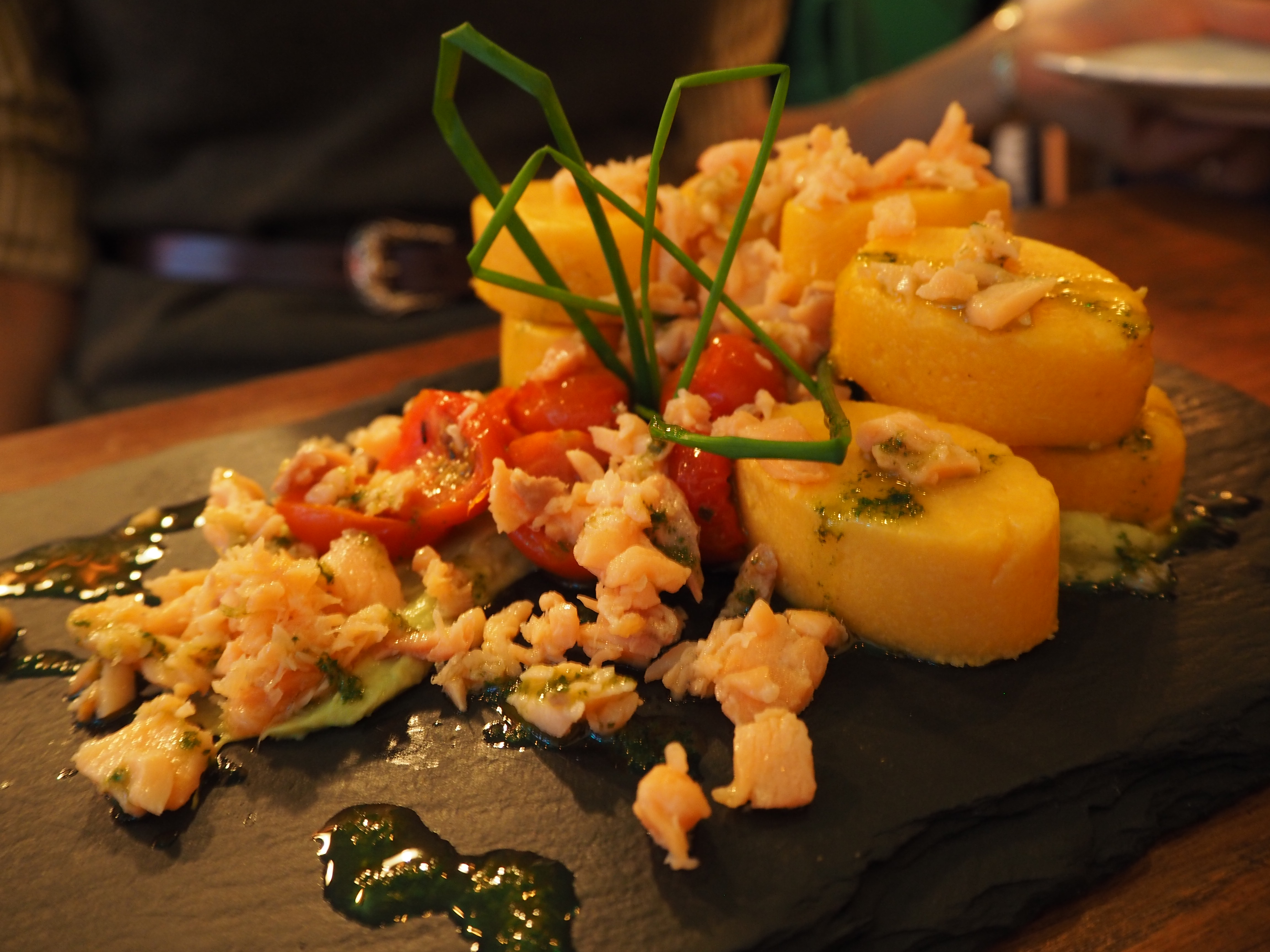 Winner, winner, beef ravioli dinner! This dish, potentially the least pleasing to the eye, and ironically the only one not containing polenta, blew us away. The slow-cooked, flavoursome beef, the sweet balsamic reduction with caramelised onions, and the lovely pine nuts on top… it was the undisputed best dish of the night. I savoured every bite!
