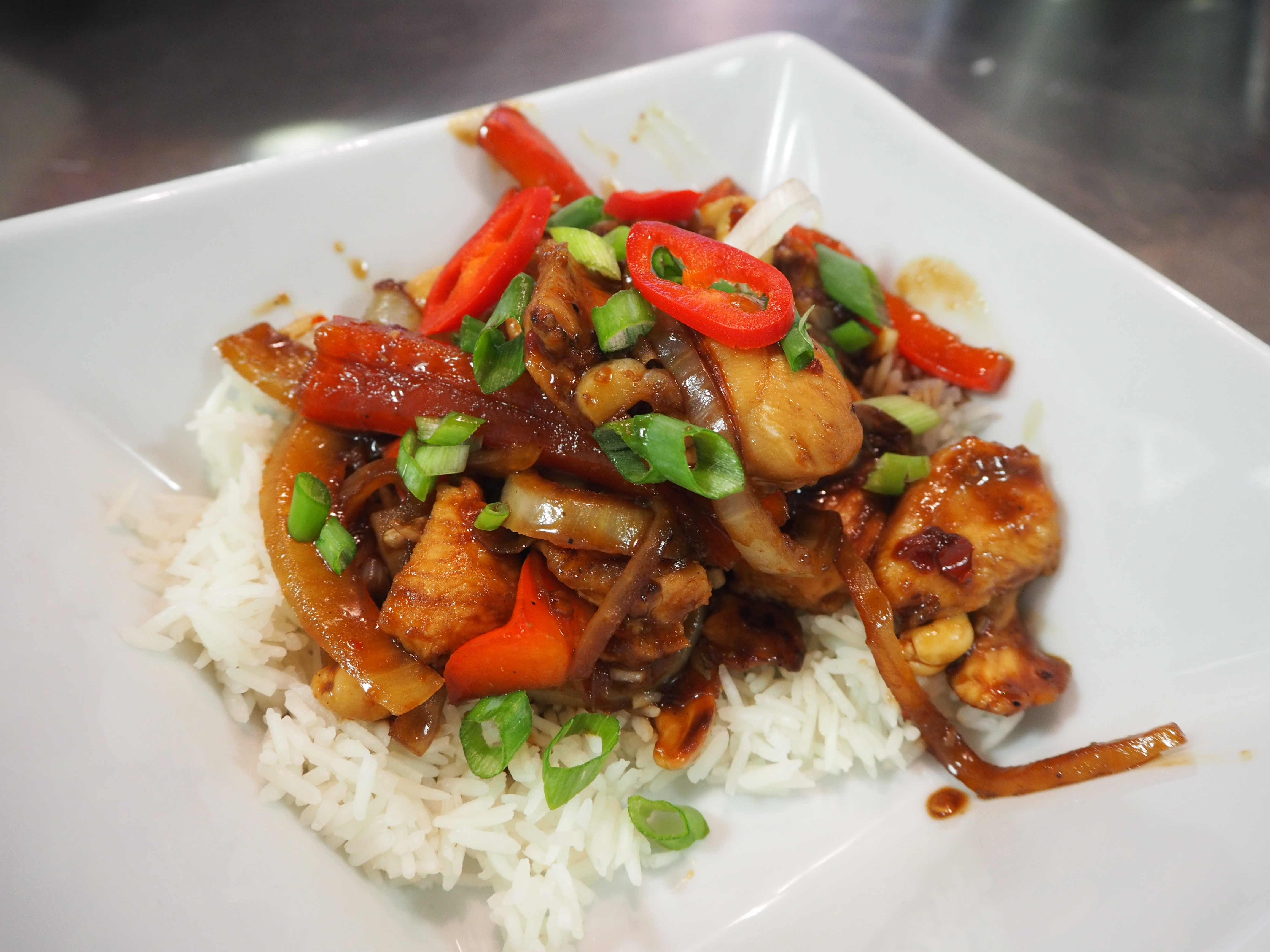 On the menu was a simple Szechuan chicken with jasmine rice. I love East Asian food, and am always keen to learn more about its flavours, so I can spice (!) up my own concoctions. Our chef took us through the recipe and explained the various ingredients (including the numbing quality of Szechuan peppercorns) and we very quickly started peeling, slicing, dicing, and grinding.