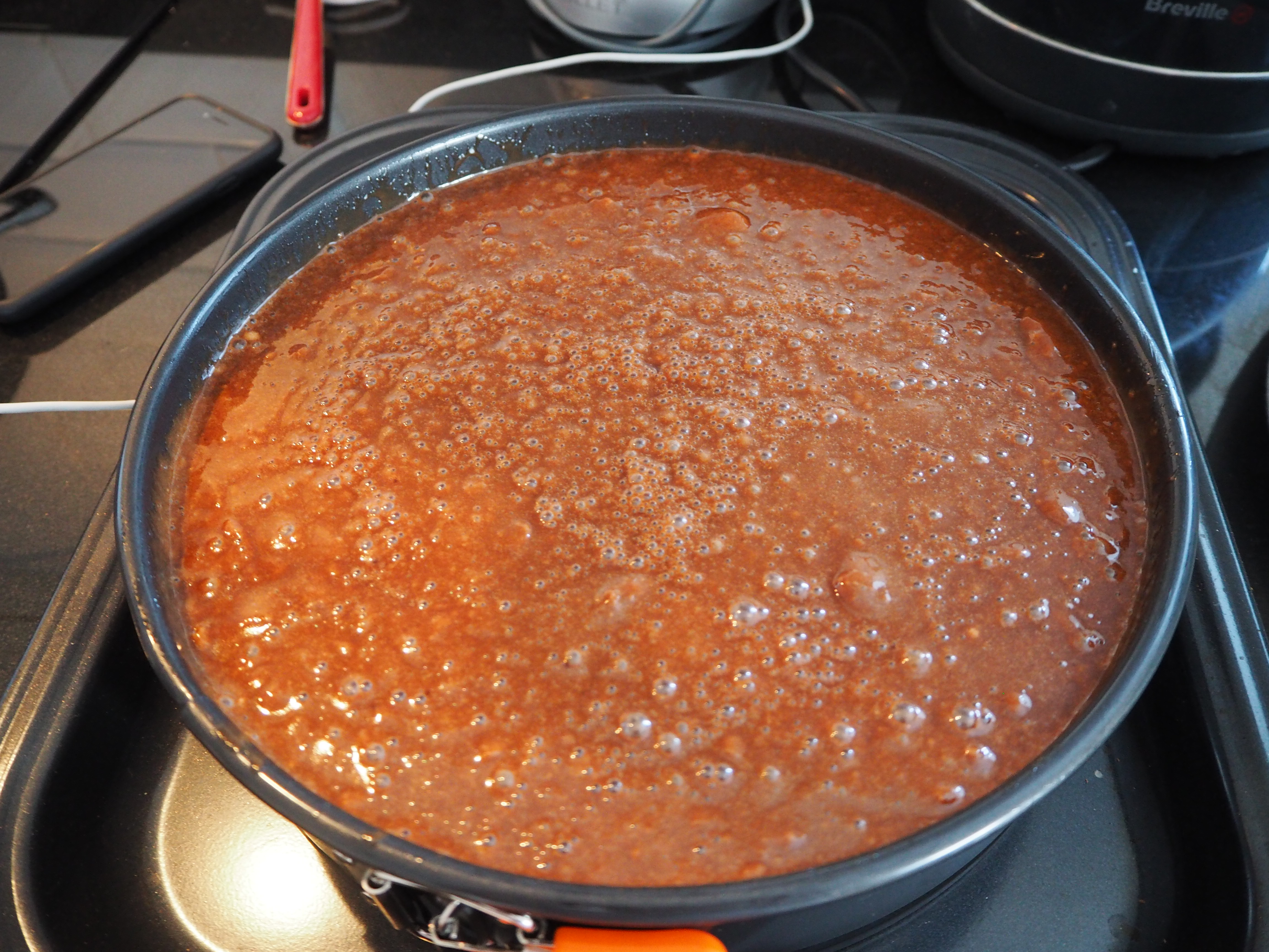 Leave in the tin to cool – it will continue to cook and should be very moist in the middle.