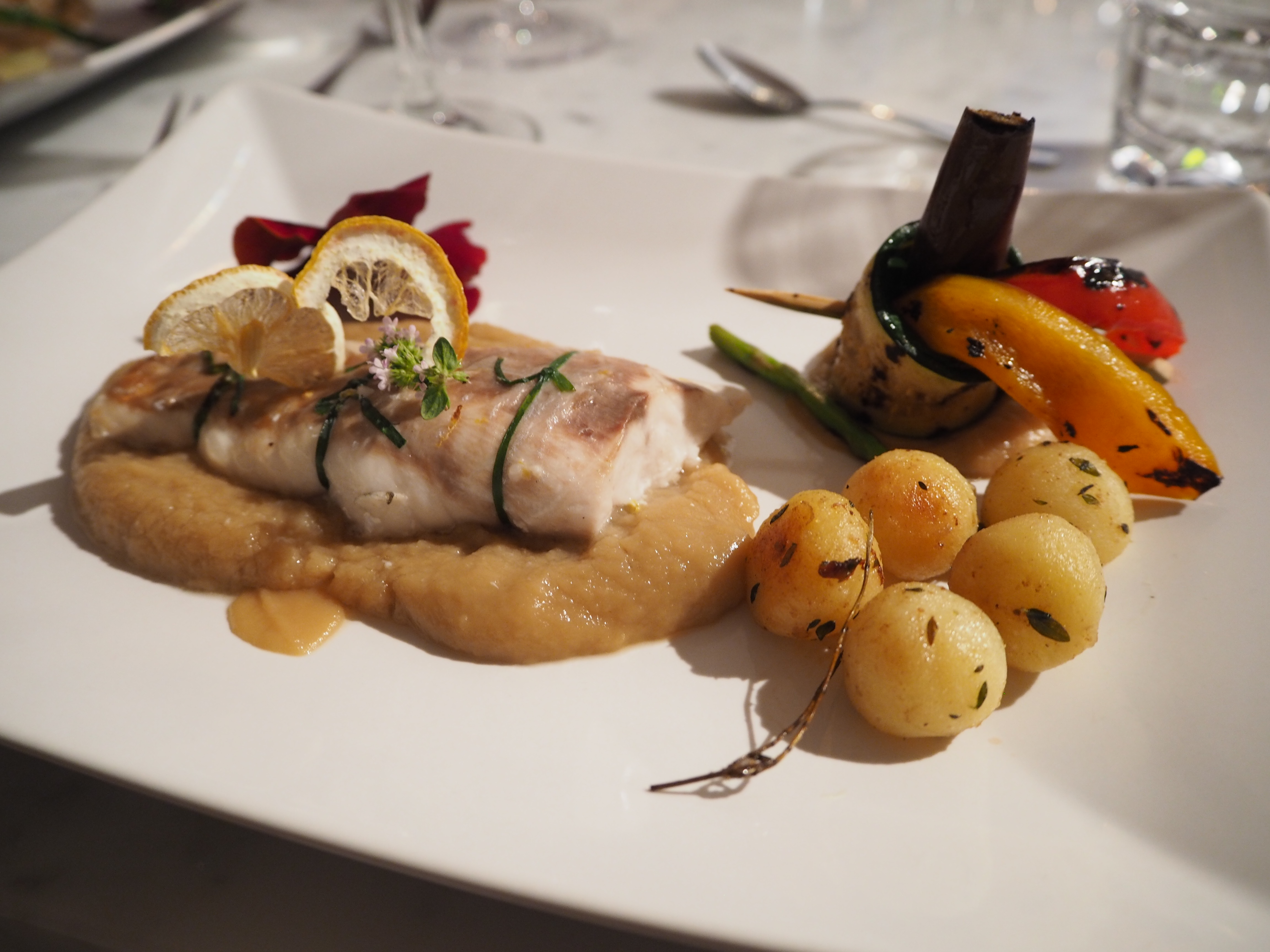 After this, we caught our first glimpse of Dani’s homegrown delights. The red pepper, cod, and homegrown salad was a small and delectable course, with both the red pepper and cod were served as purees amidst two crispy puff pastries. I adored the addition of the edible flowers, as they perked up the plate with just the right touch of colour.