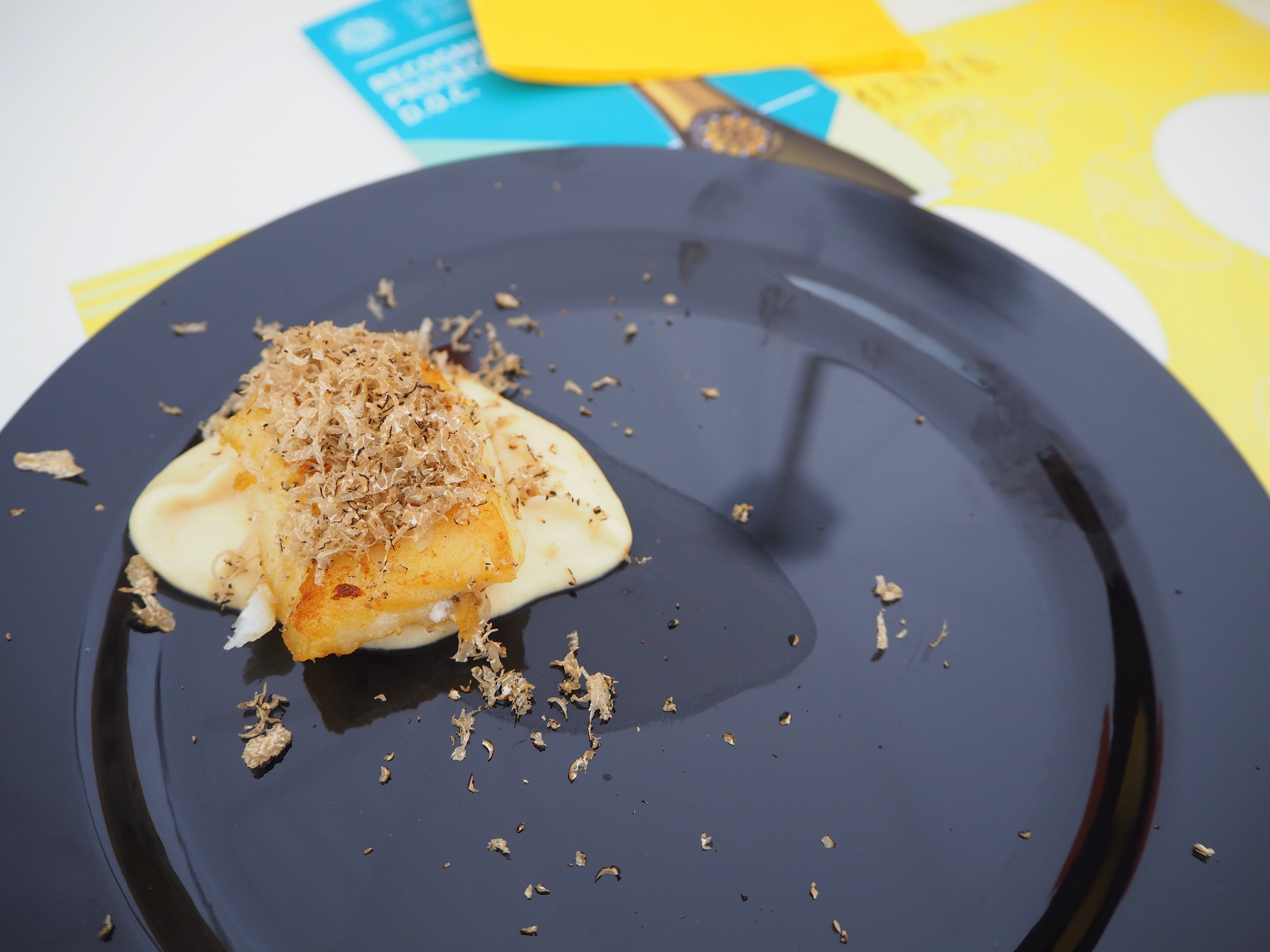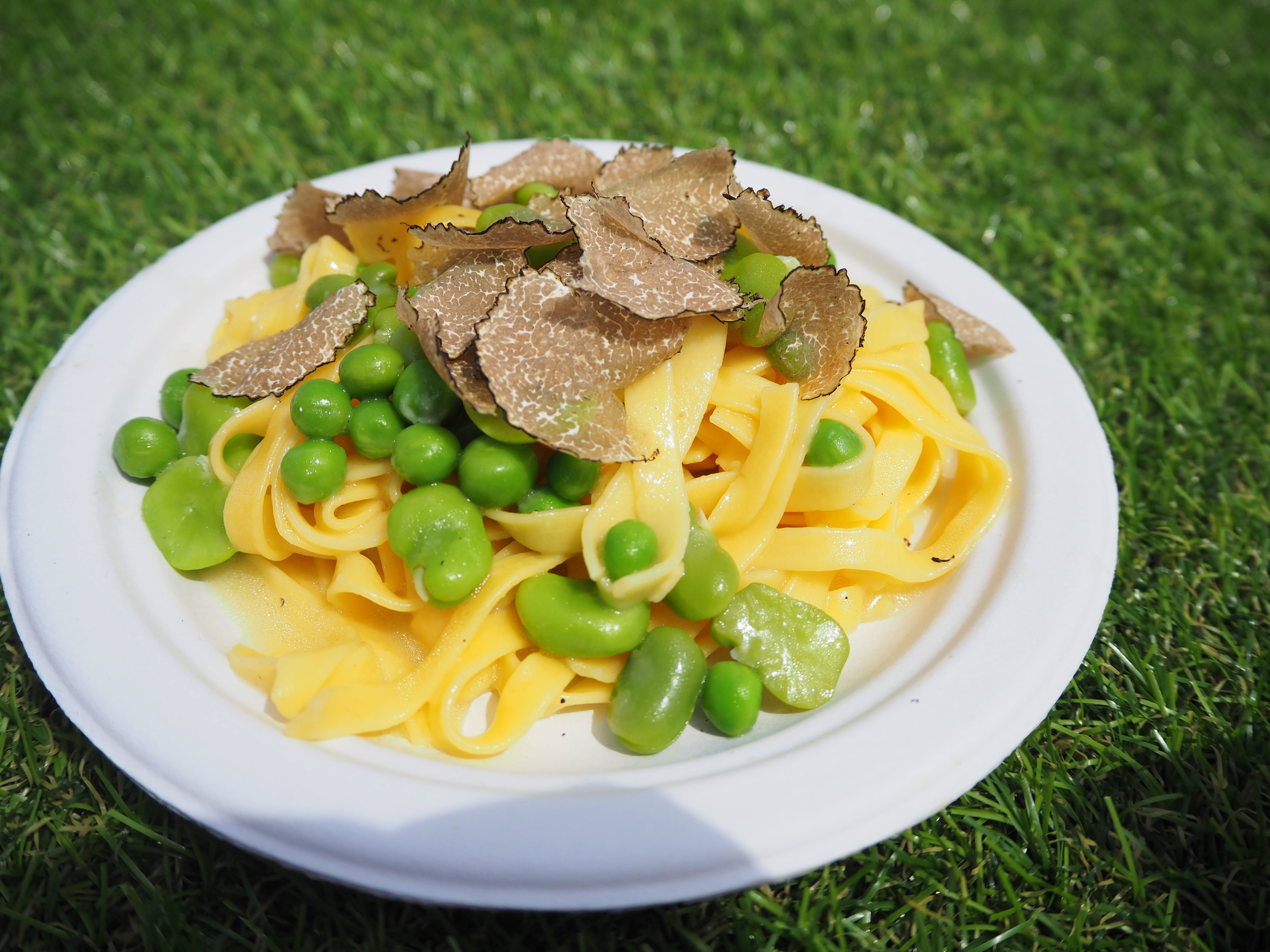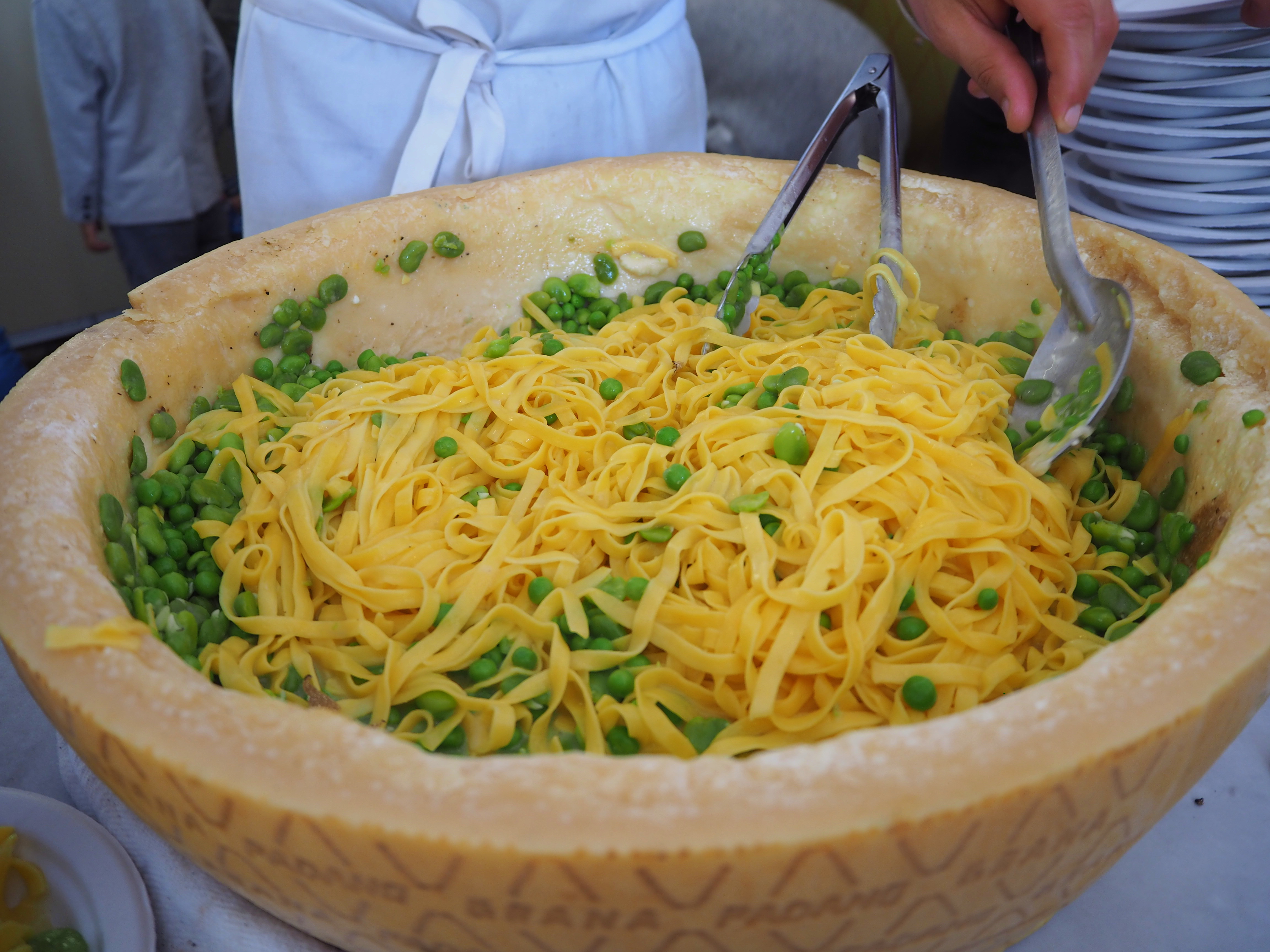 - Fettuccine with Grana Padano, broad beans, peas and black truffle, Sartoria. Perhaps the most disappointing dish of the festival, as we’d been looking forward to it for days. It looks absolutely beautiful, and I loved how they prepared it inside the Parmigiano wheel (see photos below), but it tasted surprisingly ordinary.