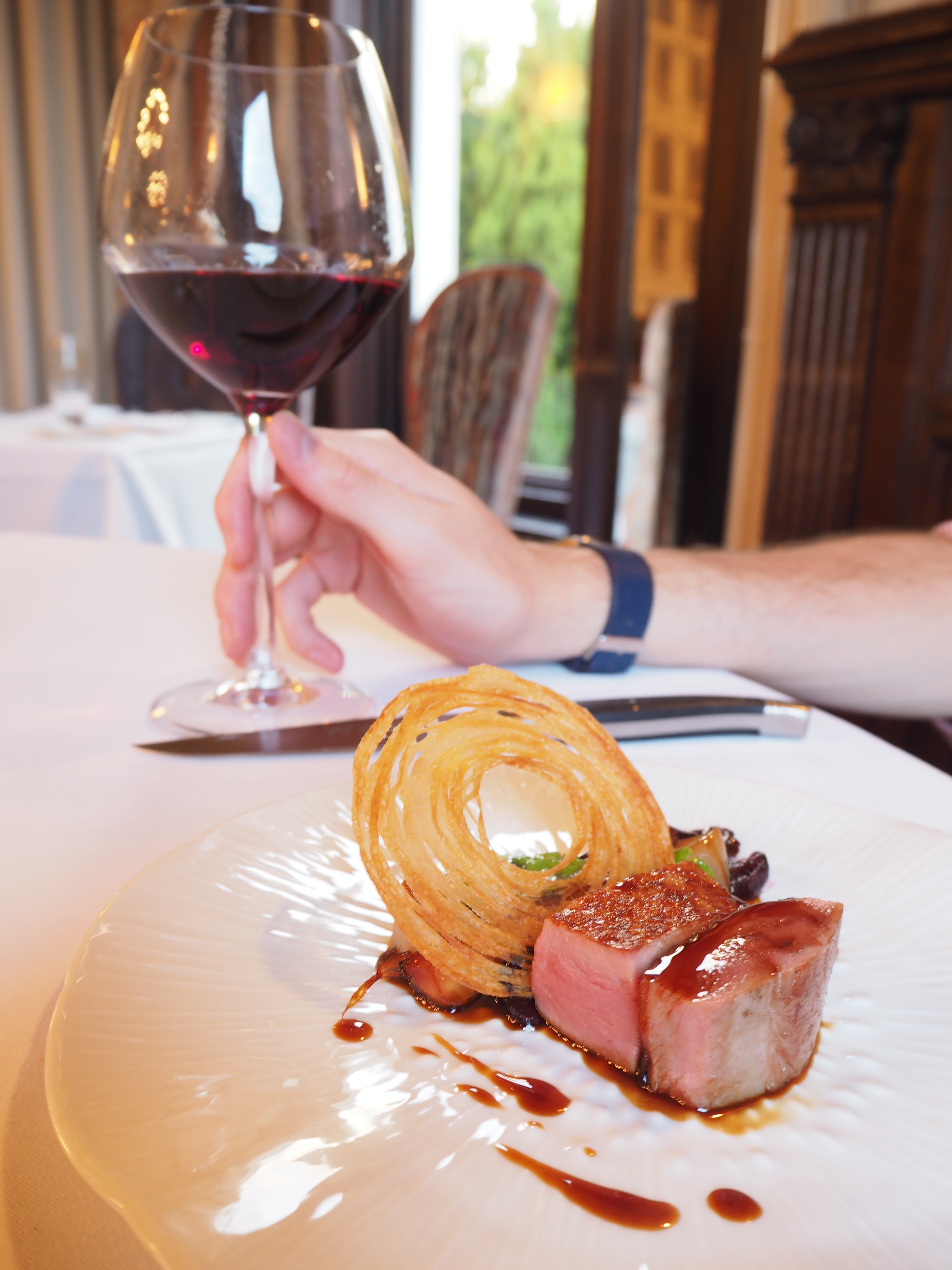 Course 6: ‘Duck’ – Gressingham duck with cranberry jelly, potato crisp, and red onion. Paired with 2014 Pinot Noir from New Zealand