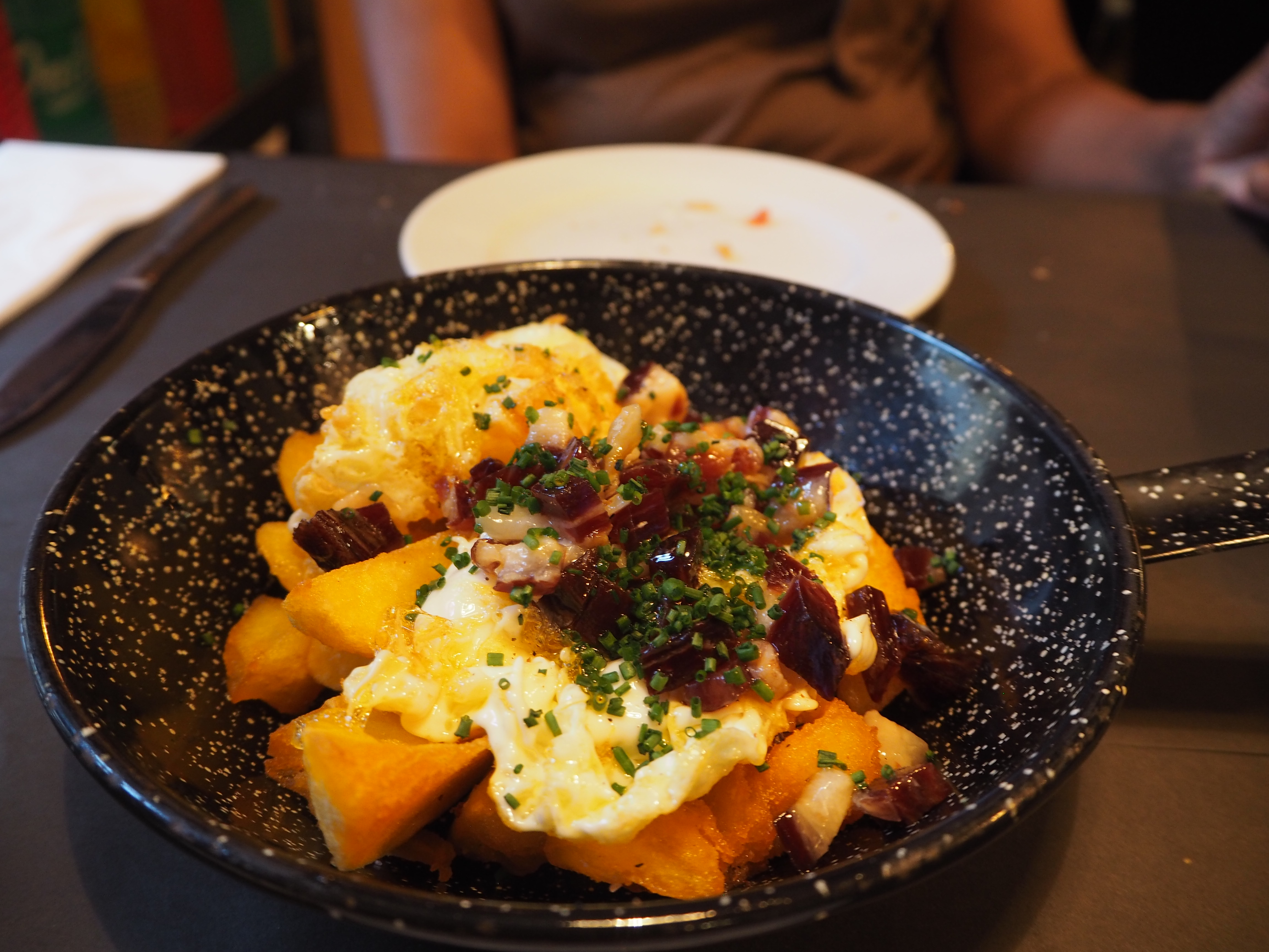 The huevos rotos (literally broken eggs over potatoes) were underwhelming, as the bits of jamon were far too chewy, which unfortunately spoilt the dish for us. I liked how they presented it in a miniature frying pan, though!