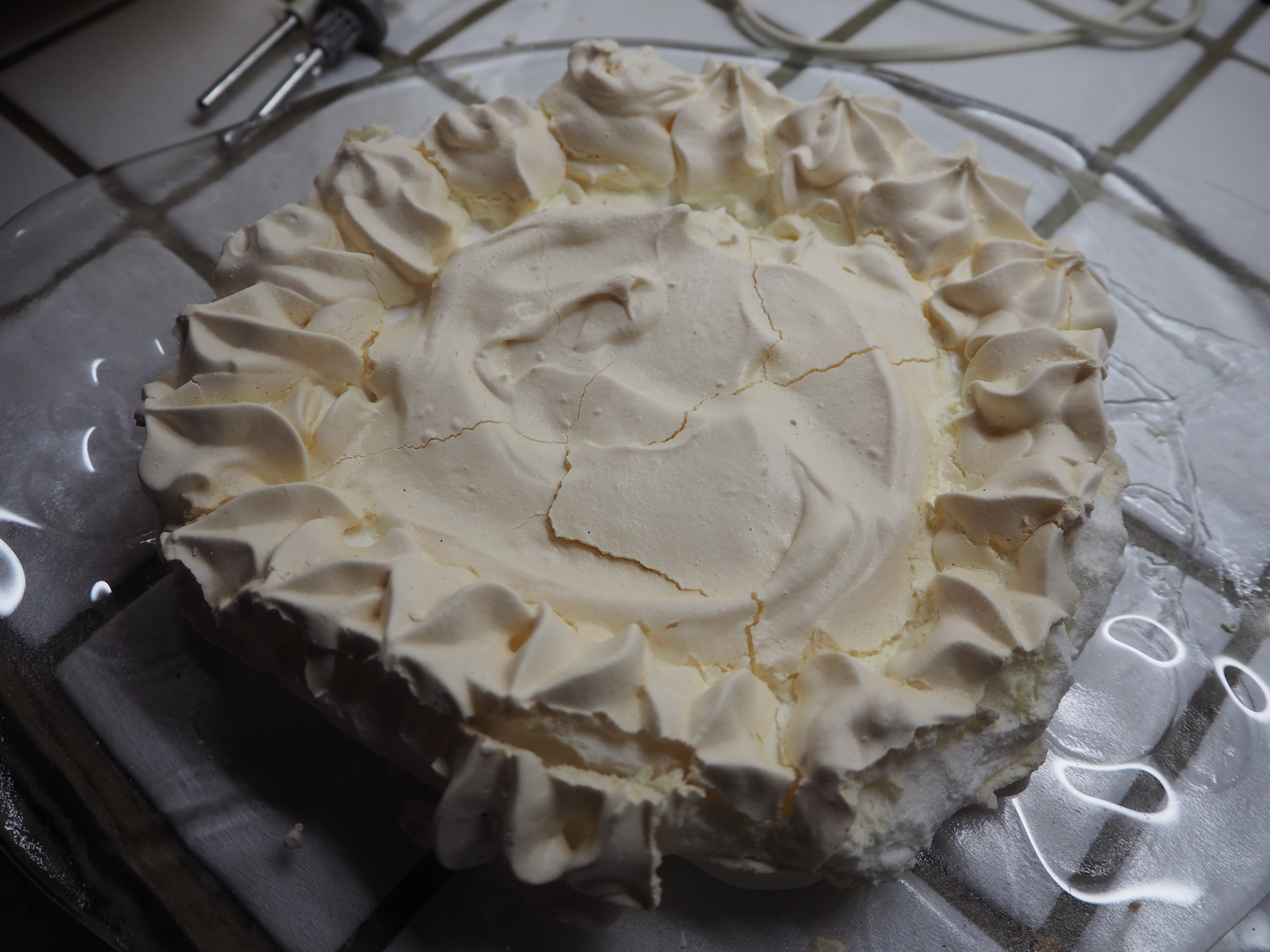 For dessert, we had a beautiful pavlova, courtesy of The Baking Medic. Made and assembled in London, we now know that it’s entirely legal and possible to carry a meringue across (European) borders. And it only had a couple of cracks at the end of the journey!
