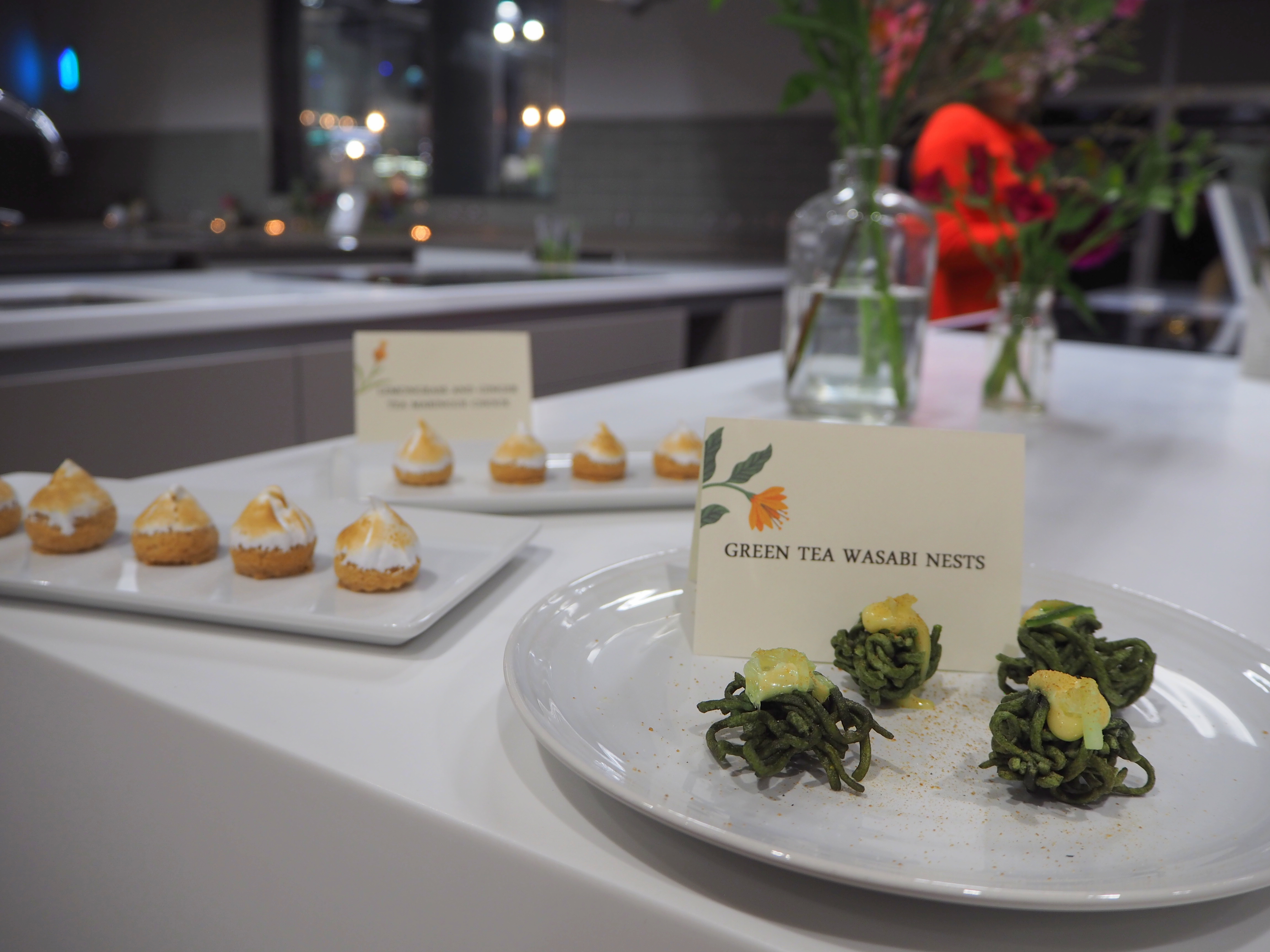 I love the floral branding on Dragonfly Tea’s products, and that gentle beauty and friendliness is something that permeated the entire evening. From the moment we came into the Waitrose Cookery School and were offered tea-infused cocktails, to the extremely creative canapés, to the education on various leaves, this was likely the most authentic and genuinely interesting bloggers’ event I’ve attended thus far.