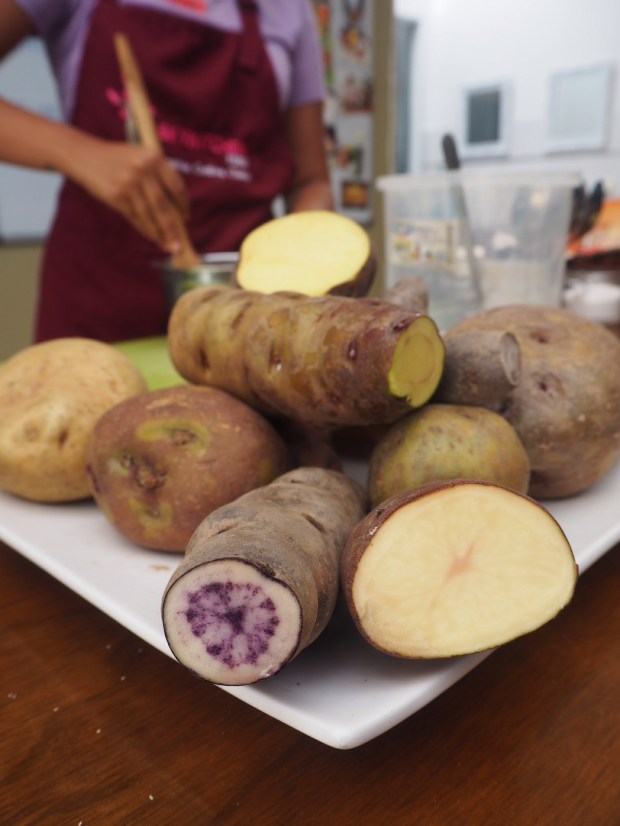 The class was run by Diana, a lovely young Peruvian lady who seriously knew her stuff about her country and its cuisine. She not only taught us how to make the dishes, but also explained their history and origins, which I loved. For example, our first dish, the causa, used to be given to men by their wives before they headed off the war, para la causa – for the cause. Hence the name!