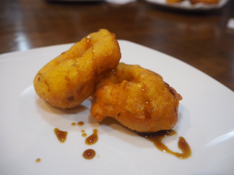 And finally, the dessert. Picarones weren’t something I’d seen before, and they were unlike anything I’d ever made, too. Have you ever mashed up pumpkin and sweet potato, mixed it with anis and deep-fried it as a dessert? I didn’t think so. The batter was oddly sticky, and we all had fun trying to make the round doughnut-style shapes before dropping it into hot oil (mine were ridiculously deformed)! Drizzled with molasses, the picarones weren’t too sweet, but lovely and crunchy, and a very unique way to end our meal. Diana made us eat them standing up, as they’re most often eaten from street stalls, and it sure felt a lot more authentic that way!