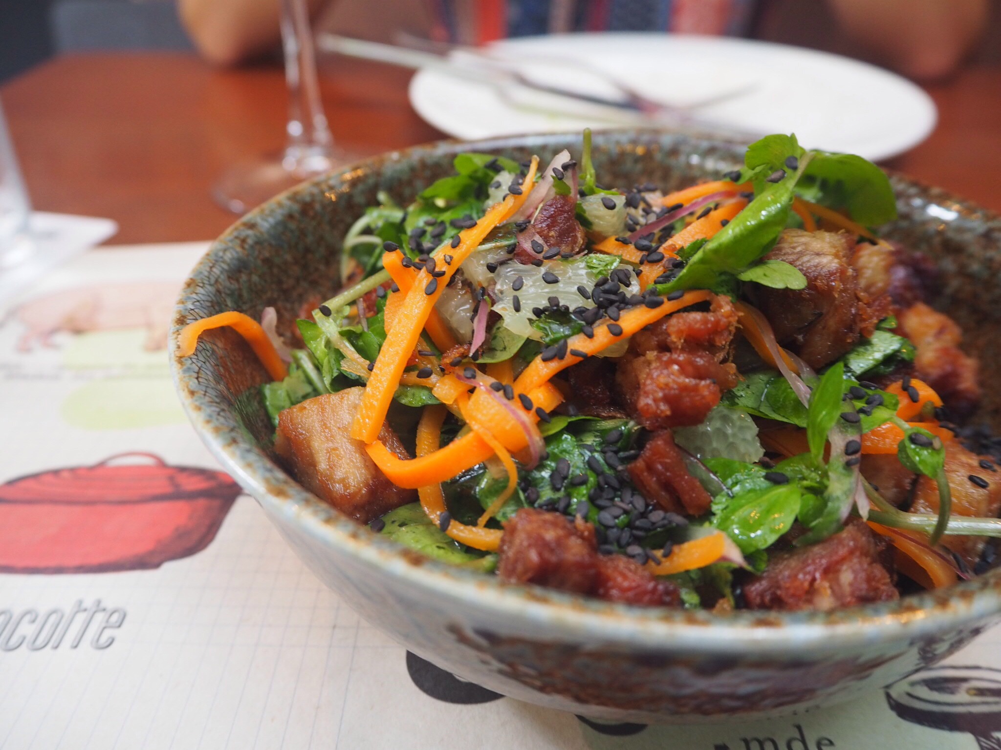 To me, the most interesting dish was the salad, which consisted of a whirlwind of flavours and textures. Crispy pork belly, pickled carrots, a slightly spicy Ponzu dressing, and sour grapefruit – who knew all these things would combine to make a perfect medley? Answer: OCI.