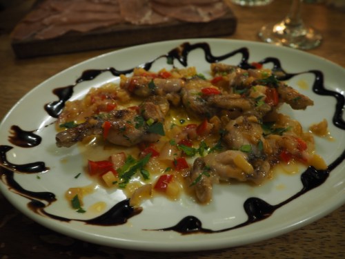 With the entire setup being so utterly français, we couldn’t resist ordering the day’s special to start: frogs’ legs. I’ve had them once before (in Paris), and I was enchanted yet again. The sauce had an Asian twist, which always wins me over, and it was the only thing we ordered that didn’t feel as though it had been drop-lifted straight from the Champs-Elysées.