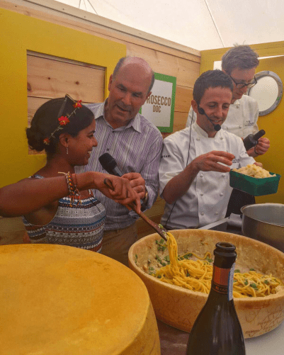 This was intentionally the same as last year, as we signed up for the Grana Padano and Prosecco DOC masterclass again. Plenty of bubbles, a giant cheese wheel, and being called up for the demonstration… how could I resist?