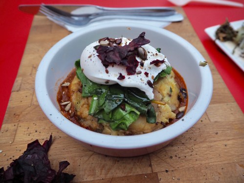 The bubble and squeak was comfort food at its finest, and the perfectly poached egg on top was a great complement. However, we both felt it was missing a little oomph, akin to the tahini dressing on the frittata.