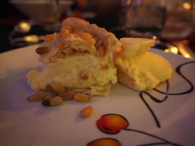 The dessert was made with love, but sadly didn’t quite hit the spot. Pine nuts, which are a great ingredient to use, were sprinkled too liberally and hadn’t been toasted enough, and the sweet custard, again, was just a bit uninspired.