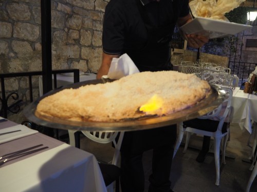 For the main, we had read about the sea bass in salt crust in every single review of Villa Ruza, and so we knew we’d want the same. It arrived with flames still licking around the plate, and our waiter then scraped off the salt and filleted the entire fish for us. ‘Do you use the leftover salt for anything?’ I asked wonderingly. ‘No, no. It’s only a kilo, and there’s enough salt in the Adriatic!’ Touché…