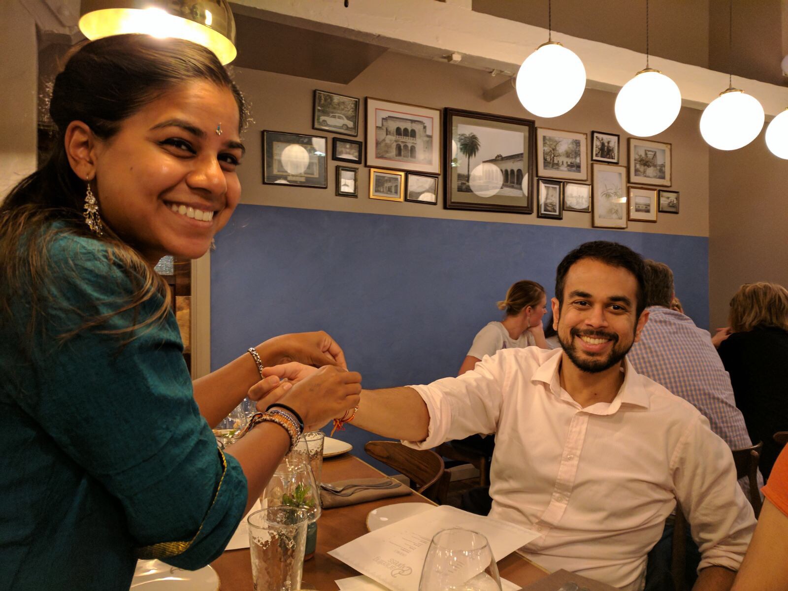 I was so excited to finally head to Asma Khan’s brainchild, after hearing nothing but rave reviews, and then the perfect occasion came up: Rakhi. For those of you unfamiliar with Rakhi, it’s a Hindu brother-sister festival, where sisters tie a rakhi (bracelet) onto their brothers’ wrists, who in turn vow to protect them (and give you a wee bit of money, too!). So it was only fitting to grab my brothers and sisters (i.e first and second cousins) and head over in the hope of some cash.