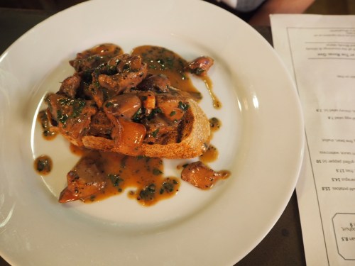 My friend went for the chicken livers, generously heaped on bread, with rich autumn colours and flavours.