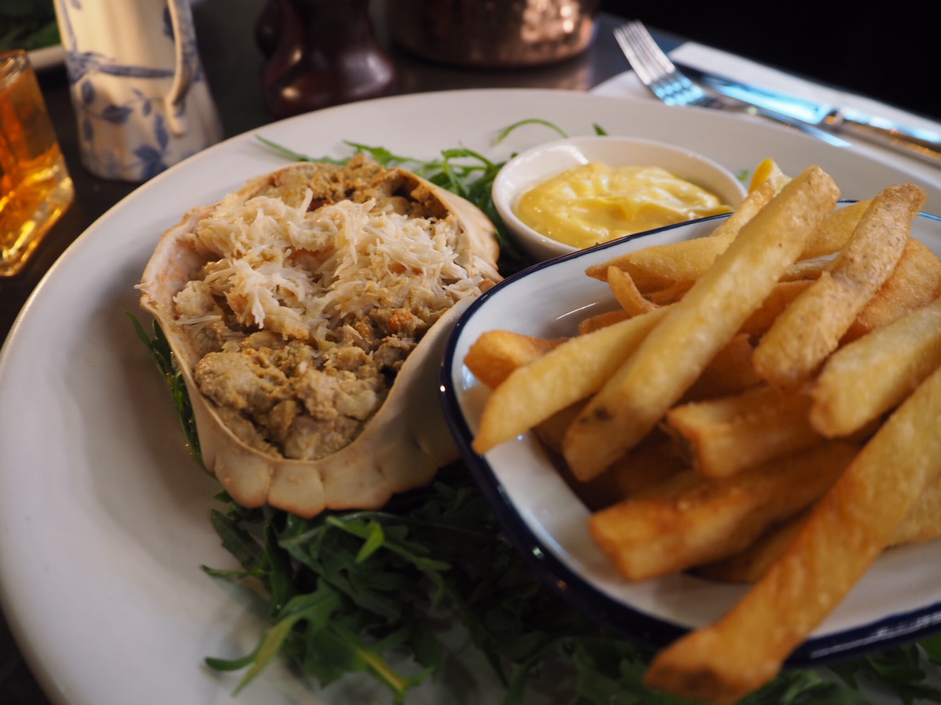 I then opted for the dressed crab, and was a little surprised when it arrived cold. I then realised that this is what dressed crab is; it’s just that my personal crab preferences are hot, shredded, and covered in chili and garlic! Nonetheless, the sea creature was definitely very good quality, and I loved the presentation within its shell. And the chips (always the test of a good establishment) were delightfully hot and crispy, complemented with the subtle saffron aioli.