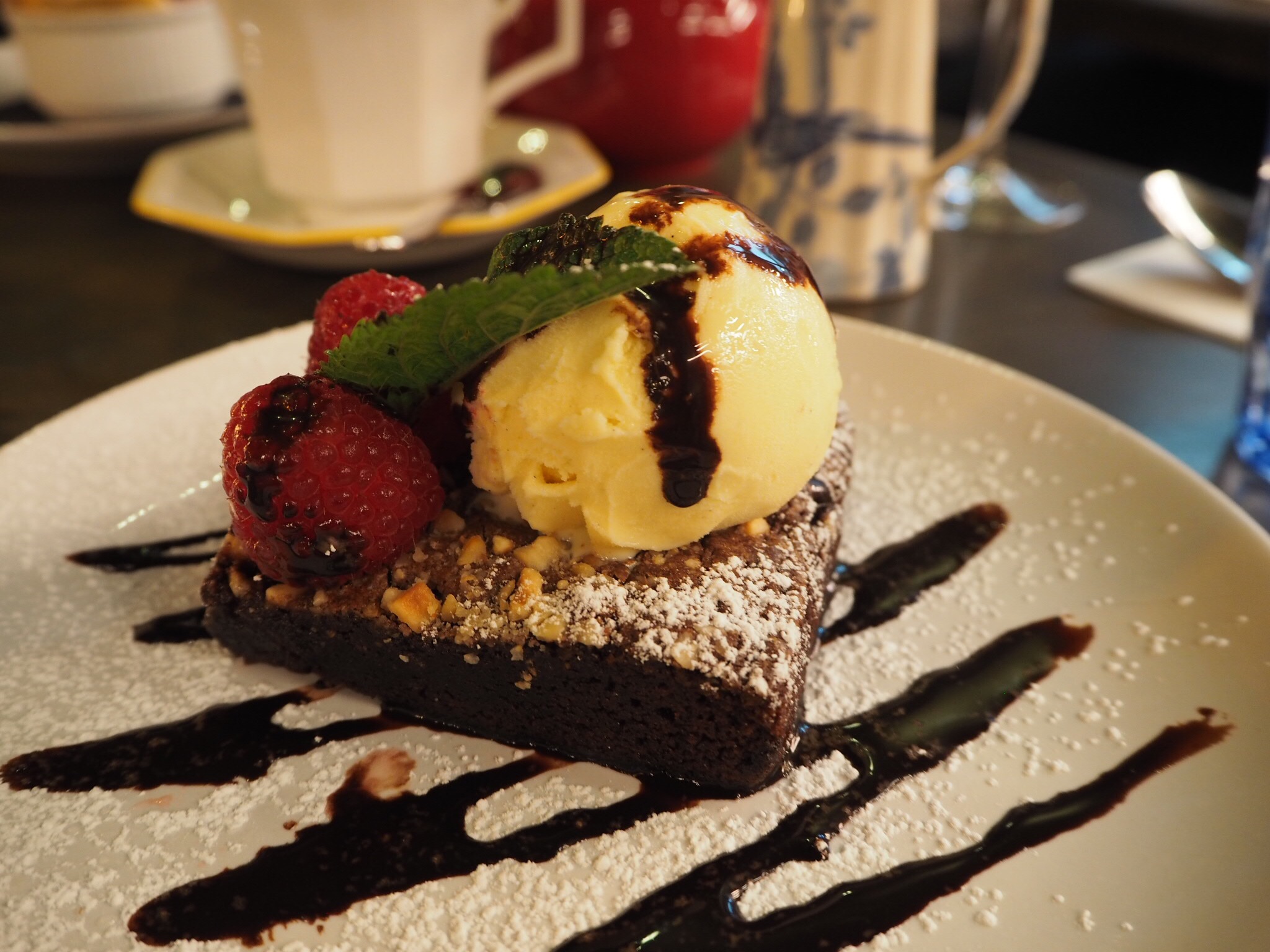 As soon as I glanced at the dessert menu, there was no doubt in my mind as to which one I wanted. Of course it was the chocolate and hazelnut brownie, which was excellently moist and had a lovely dollop of vanilla ice cream on top. The portion was insanely generous though, and to my dismay, I was unable to finish it (this is a rare occurrence indeed)! Served with some Birchall tea (I have a soft spot for them due to a trip to Cornwall last year), it was a wonderful way to finish the evening, and so we waddled back out into the crisp night air.