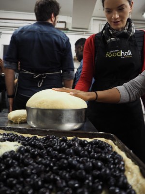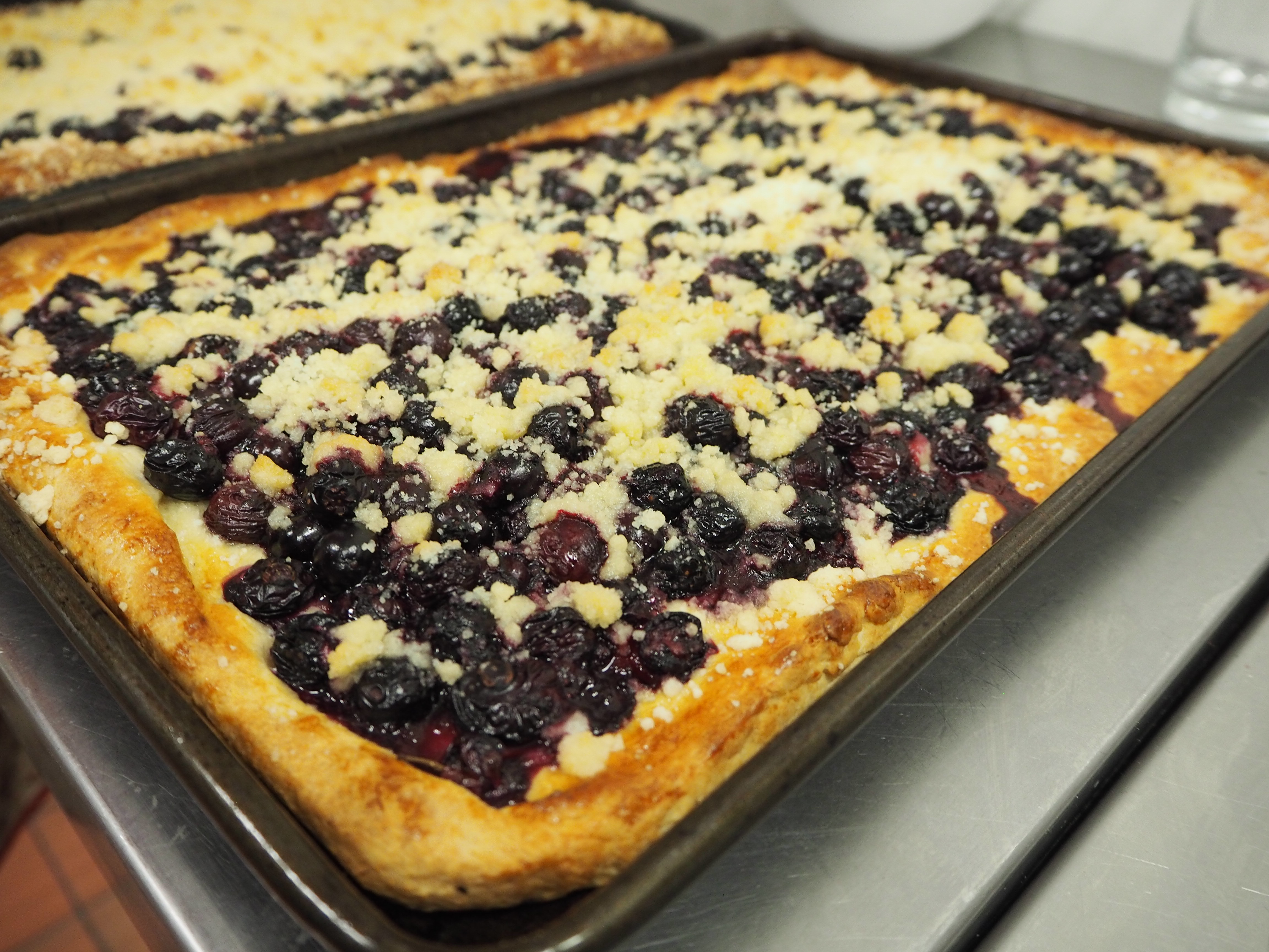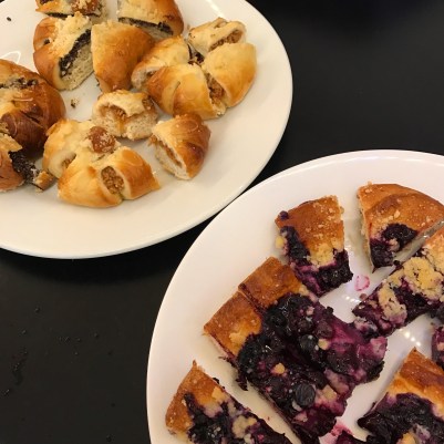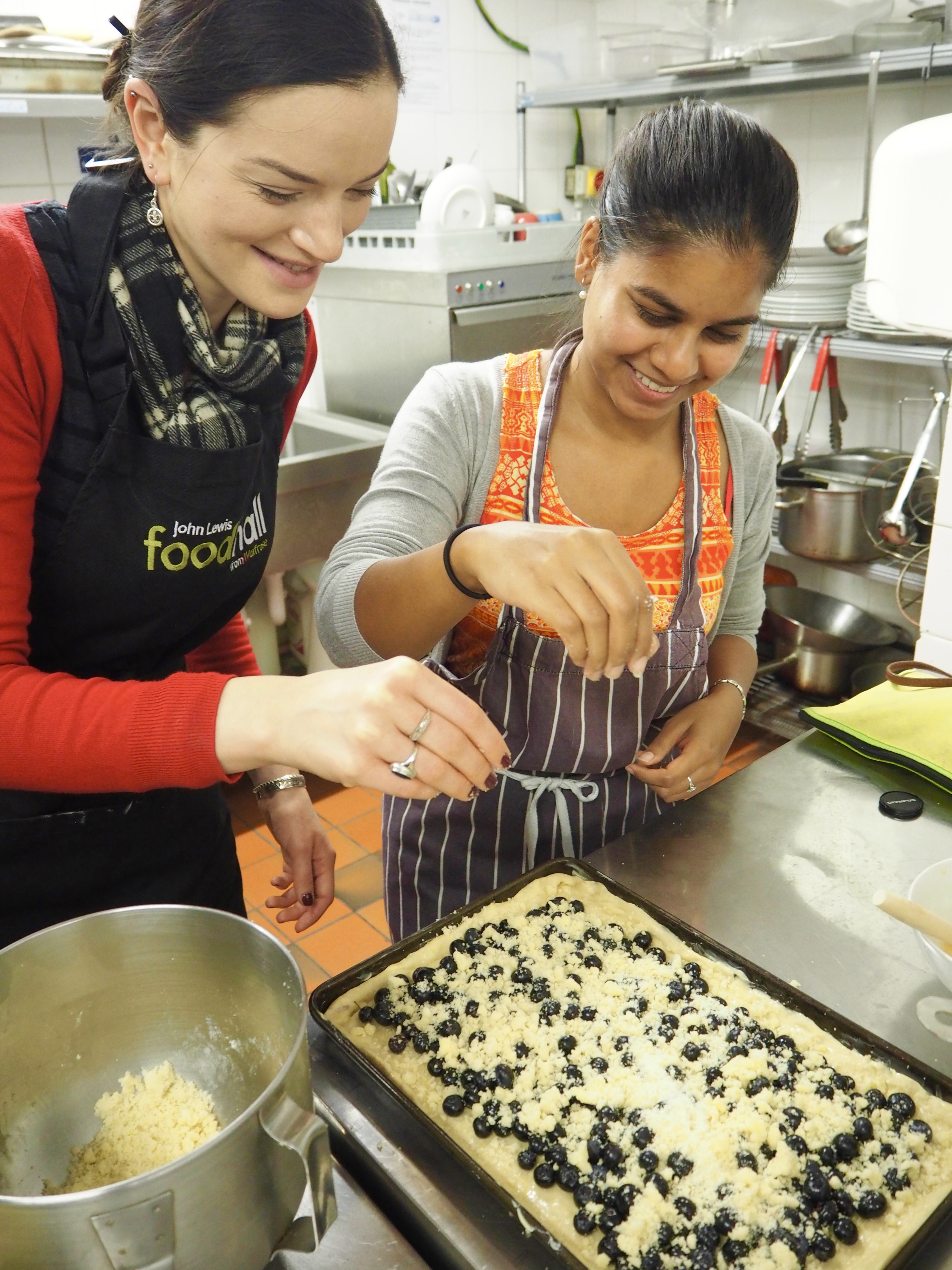 The various fillings we stuffed them with were the aforementioned poppy seed, spiced apple, and blueberry. The crumble that was sprinkled on top was nothing but sugar and butter, and my friend and I had to stop ourselves from eating it all with our bare hands!