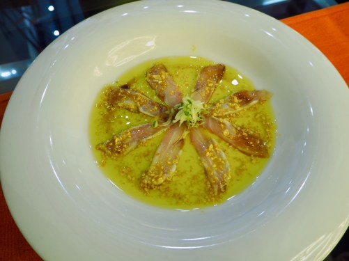 We started off with the restaurant’s specialty: sea bream sashimi with olive oil, garlic, soy sauce and spring onion. It arrived in a perfect arrangement, and then the sizzling sauce was drizzled on top with a theatrical flair, exuding the mouth-watering aroma of garlic, with the hot oil slightly cooking the fish as it hit the plate.