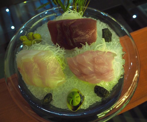 Next up: a sashimi trio. Presented creatively in an upside-down fishbowl, the exquisite and velvety tuna hailed from Colombo, whilst the red mullet and sea bream were straight from the south coast. The latter two, though fresh, unfortunately felt a bit sinewy. Due to some excellent sashimi I’ve had in London (I’m thinking about Sushisamba in particular), I wasn’t completely convinced overall, but the namesake tuna definitely delivered.